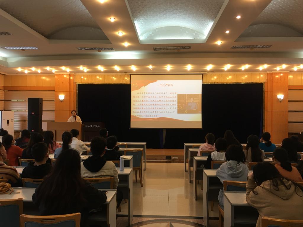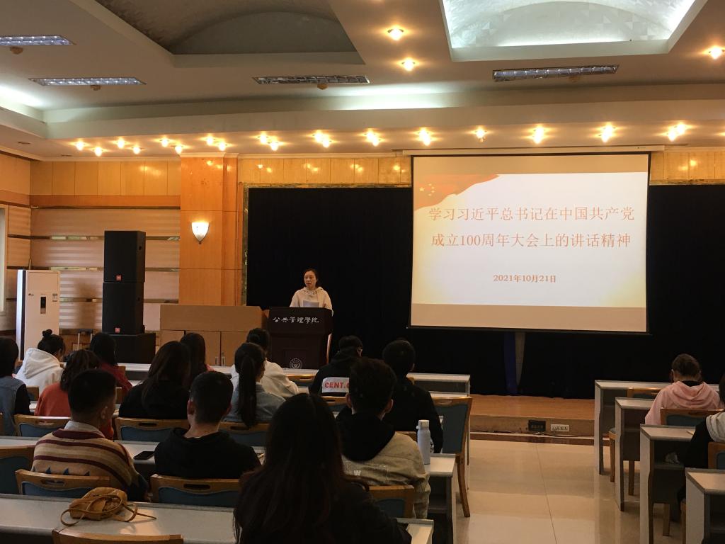 2021年10月21日下午,学院研究生六支部书记何薇以“学习习近平总书记在中国共产党成立100周年大会上的讲话精神”为题,为我院2021级研究生全体党员讲专题党课。