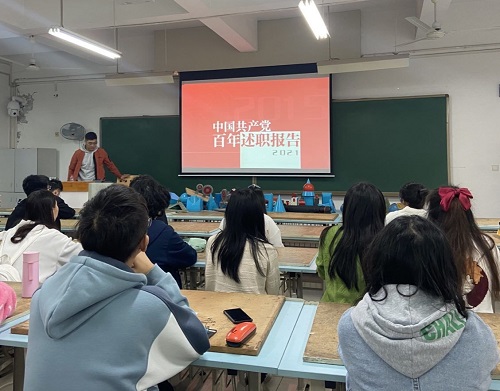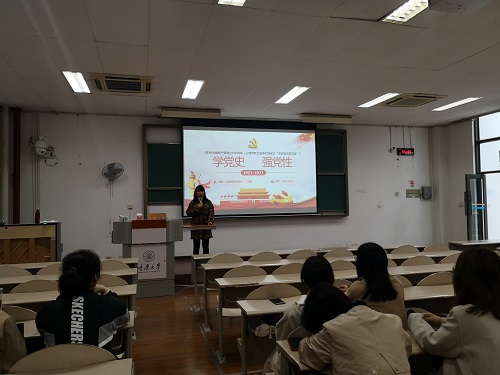 本次活动以主讲人讲授为主、观看有关党史的视频为辅的形式展开。各位主讲人从新中国的成立、社会主义制度在中国的建立、中国特色社会主义道路的摸索到党的百年光辉历程给我们的启示,依次展示了中国共产党不懈奋斗的历史,为全体与会人员带来一场视听盛宴。其中,王丽娟同志结合内容详实、生动形象的演示文稿,为同学们娓娓道来中国共产党成立以来走过的艰辛岁月和开辟的巨大工程。党的光辉历史犹如一幅幅画卷在同学们面前展开,中国共产党人的崇高精神和家国情怀让同学们为之震撼。徐柳同志则以自身的成长经历为切入点,再现我国在中国共产党的带领下在政治、经济、民生等方面翻天覆地的变化,呼吁同学们珍惜这来之不易的幸福生活,以真切的行动回报党和祖国。台上精彩的讲述感染了在场的各位同学,赢得了阵阵掌声。