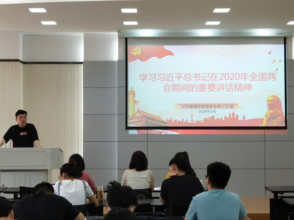 会议认为,全体党员要立足学生本职,结合学习、生活实际,深入贯彻落实全国两会精神。要准确领会党中央对当前大局大势的分析判断,坚定信心,刻苦学习,奋发有为。作为即将迈入毕业年级的学生,要清醒认识疫情影响下就业岗位减少、今明两年毕业生就业“窗口”叠加等严峻挑战,在提高自身本领、增强升学就业能力的同时,积极关注身边经济困难家庭、学业困难同学的升学、就业问题,尽力协助支部和辅导员做好就业帮扶工作,为国家分忧、为同学解难。要乘势做好宣传思想引导工作,带头向同学讲好伟大抗疫斗争的生动故事,紧紧抓住打赢脱贫攻坚战、全面建成小康社会的历史节点,始终绷紧防范化解风险这根弦,教育引导广大同学在现实观察和国际比较中增强制度自信。要在学校常态化疫情防控和返校复课过程中发挥突击队作用,带头严格遵守学校各项管理规定,共同做好广大同学的思想工作、心理疏导和生活服务,维护学校、学院安全稳定。