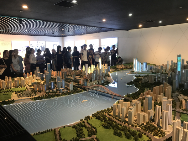 重庆市规划展览馆位于长江、嘉陵江交汇处的朝天门广场,馆内囊括了重庆市各区县及2个国家级开发区的城市规划内容,将8.24万平方公里的重庆浓缩其中。在讲解员的带领下,大家一同参观了序厅、协调发展厅、主城区厅、主模型厅、历史文脉厅和“山清水秀美丽之地”等展厅,深入了解了重庆的“两点”定位,“两地”“两高”战略目标,以及重庆在对外交通、城市规划、历史文脉等方面的详细内容。大家在主看台上观看了《行千里·致广大》重庆宣传片,一起深刻感受了重庆的独特历史,了解了重庆的城市变迁以及对未来发展的美好蓝图。在“山清水秀美丽之地”影像体验空间,同学们纷纷称赞这里将“春赏花、夏避暑、秋观叶、冬玩雪”的重庆展现得淋漓尽致,美丽景色令人神往。