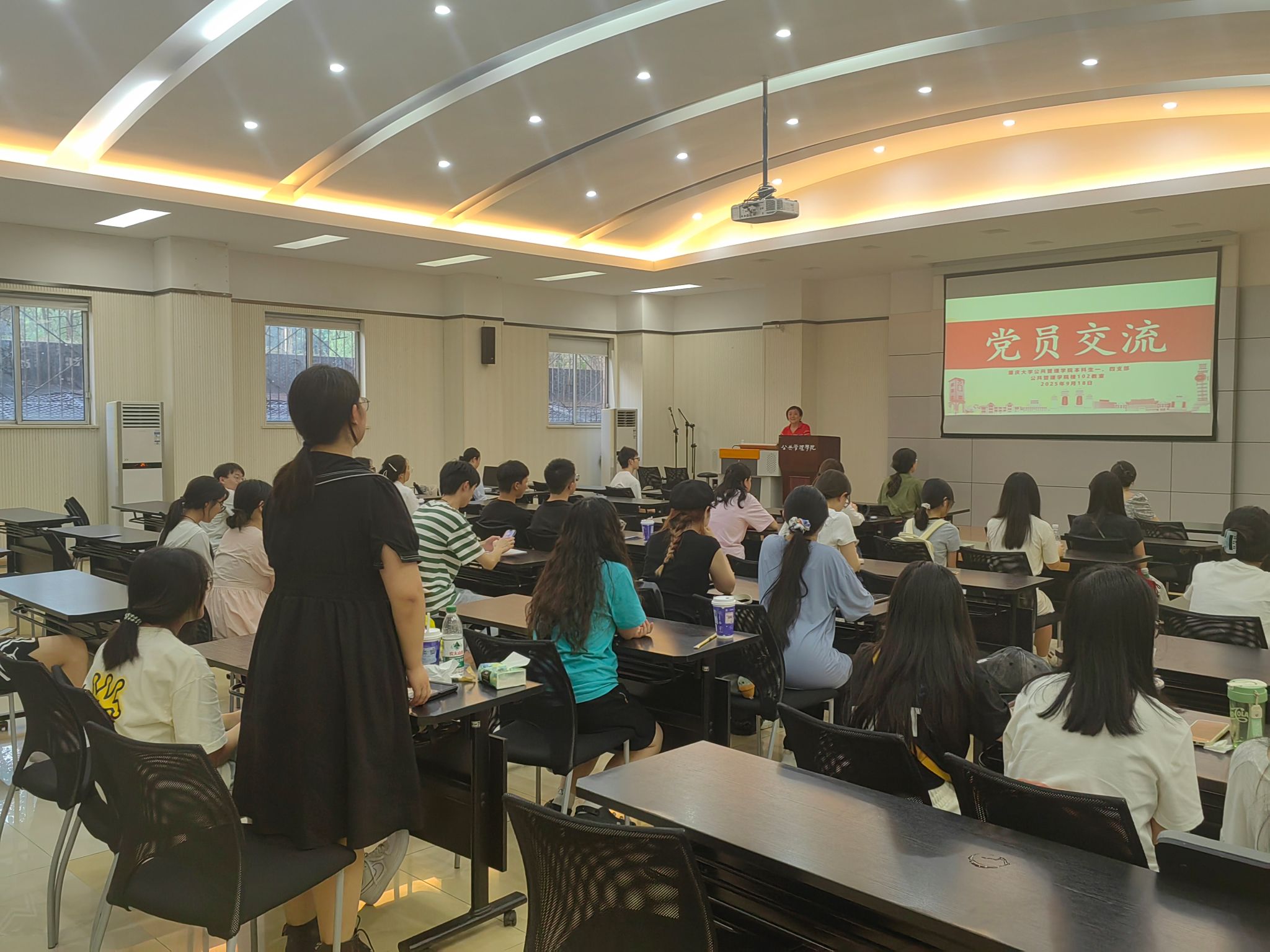 本科生一、四支部在学院楼102会议室开展了“样板支部新征程,凝心聚力助成长”系列活动,本次活动主题为学习习近平在纪念中国人民抗日战争暨世界反法西斯战争胜利80周年大会上的讲话。活动旨在通过深入学习讲话精神,加强学生的爱国主义教育,提升思想觉悟,激发爱国热情。由本科生一支部书记王丽娟主讲,本科生一、四支部的全体党员积极参与本次组织生活。