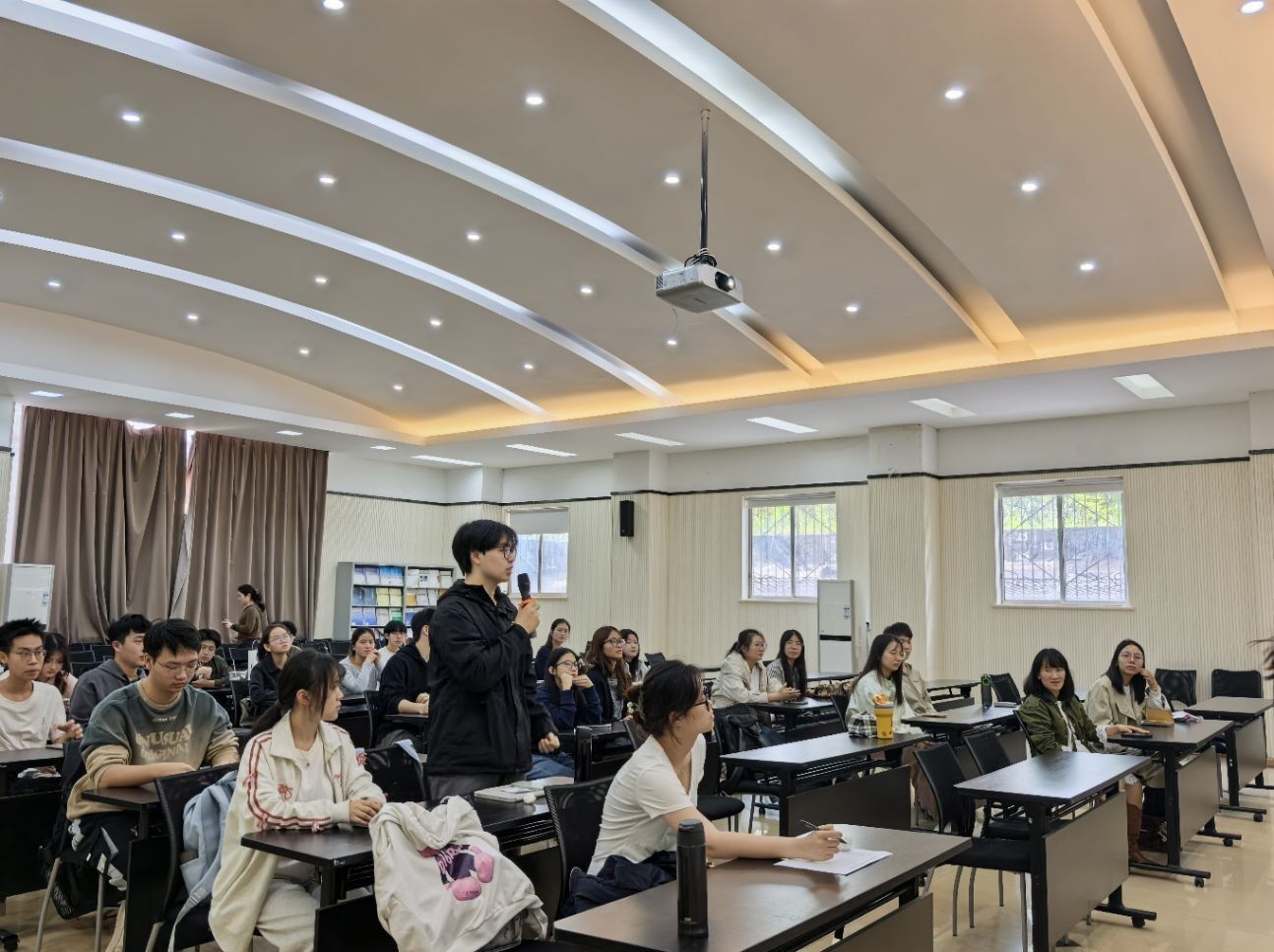 张瀚同学提到,国庆期间回到聚居着苗族、土家族的彭水县,看到工作人员身着民族服饰迎接游客,游客积极体验土家族传统礼仪,真切感受到民族融合的民心所向;热汗古丽·麦麦提同学则分享了参观云南少数民族景区时,看到当地少数民族担任景区工作人员、在景区外开客栈等实现增收的场景,感慨民族团结带来的发展活力。