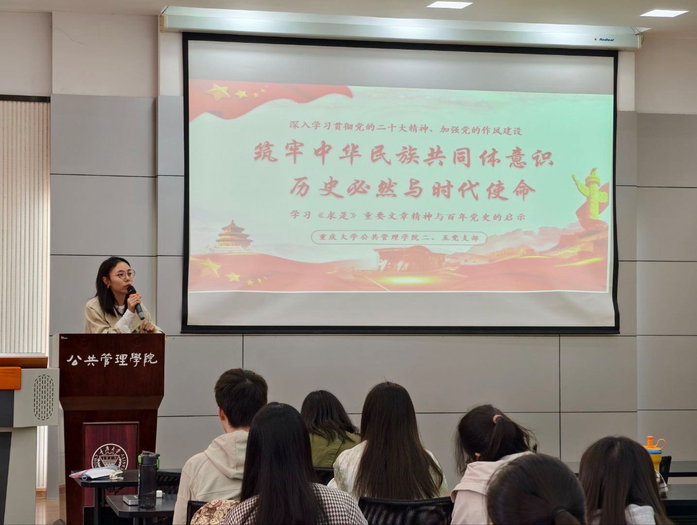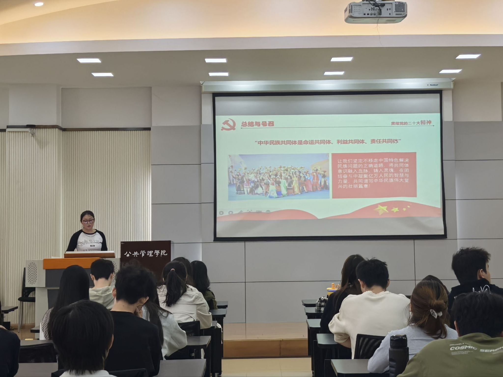 本科生二、五支部在学院楼102教室联合举办了“铸牢中华民族共同体意识,历史必然与时代使命”主题党日活动。本次活动深入学习习近平总书记在全国民族团结进步表彰大会上的重要讲话精神及《求是》重要文章精神,结合党史历程解读铸牢中华民族共同体意识的重大意义和时代使命。活动由本科生二支部书记徐柳主持,本科生五支部书记曹李思帆以及两个支部的全体党员和入党积极分子到场参加。