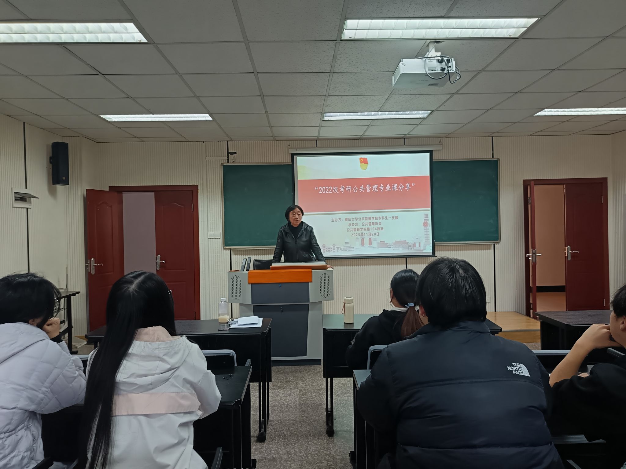楼104教室举办。本次活动旨在践行:“凝心聚力助成长、党建引领办实事”的宗旨,为备考公共管理专业研究生的同学提供实用的学习经验与方法指导,助力同学们科学规划、高效备考,会议由本科生一支部书记、公共管理协会指导老师王丽娟主持,2025级公共管理专业四名经验分享硕士以及报考学生和公共管理协会的部分同学组成。