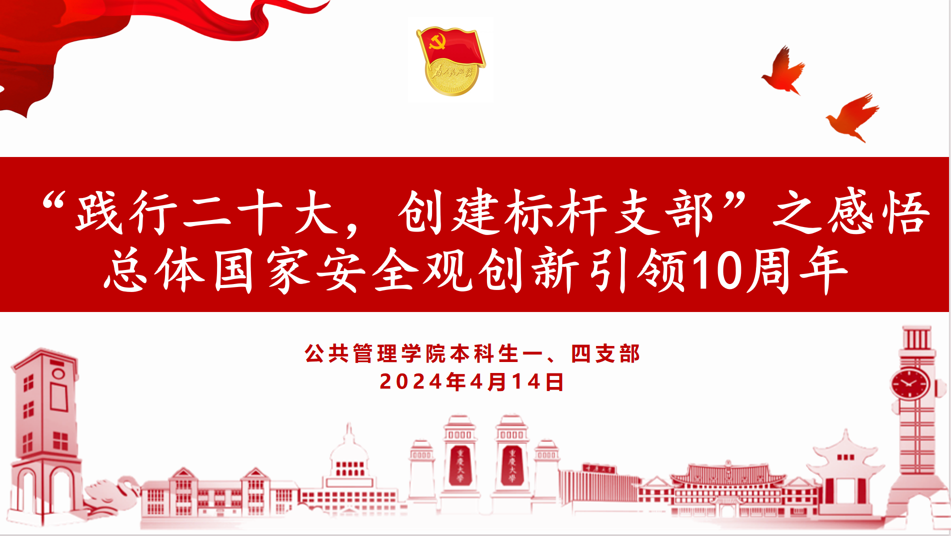 2024414日晚900,“践行党的二十大,创建标杆支部”之“感悟总体国家安全观创新引领10周年”线上活动圆满结束。在实现中华民族伟大复兴的新征程上,我们要始终坚持总体国家安全观,把维护国家安全的战略主动权牢牢掌握在自己手中!