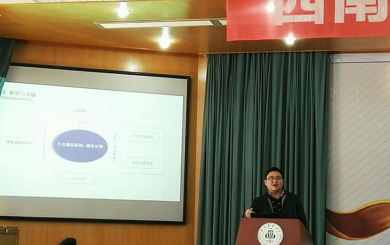 会议开幕式上,四川农业大学副校长杨文钰等4位领导为本次会议致辞。主论坛上,以中国青年政治学院陈树强教授为代表的6位专家先后做了学术报告,西华大学的钱宁教授、重庆工商大学周昌祥教授分别对各位专家的报告做了精彩的点评。我院杨宝副教授作为受邀专家在主论坛上做了报告,分享了近期的一篇研究成果《嵌入结构、资源动员与社会工作服务绩效》。胡晓芳副教授受邀参观雅安上里镇庙圷村的社工站,和当地的老师、社工交流了社区社会工作的经验。城市社区治理的分论坛上,研究生谢双鞠就论文《公共性再生产:社区共同体困境消解策略》进行了汇报。