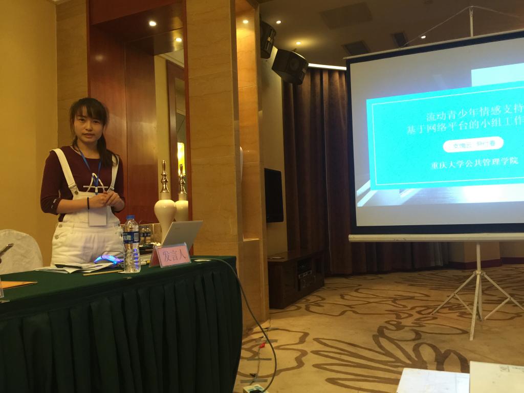 尹付春同学就《流动青少年的情感支持:基于网络平台的小组工作探索》一文在分论坛上做出了报告,指出随着社会不断发展,在物质需求逐渐满足的基础上,流动青少年情感需求的匮乏逐渐引起大家的重视,而基于网络平台开展的有关流动青少年情感支持的研究未见报道,并在此背景下引入对重庆市一中学学生的案例分析,提出在学校情境下流动青少年情感支持受其正向情绪、人际适应和学校适应的影响较为显著,在网络平台上通过赞美、倾听、共情和分享等方式能更好地帮助流动青少年改善其同辈人际关系并获取有效的情感支持。论文得到了与会专家和学者的鼓励和建议。