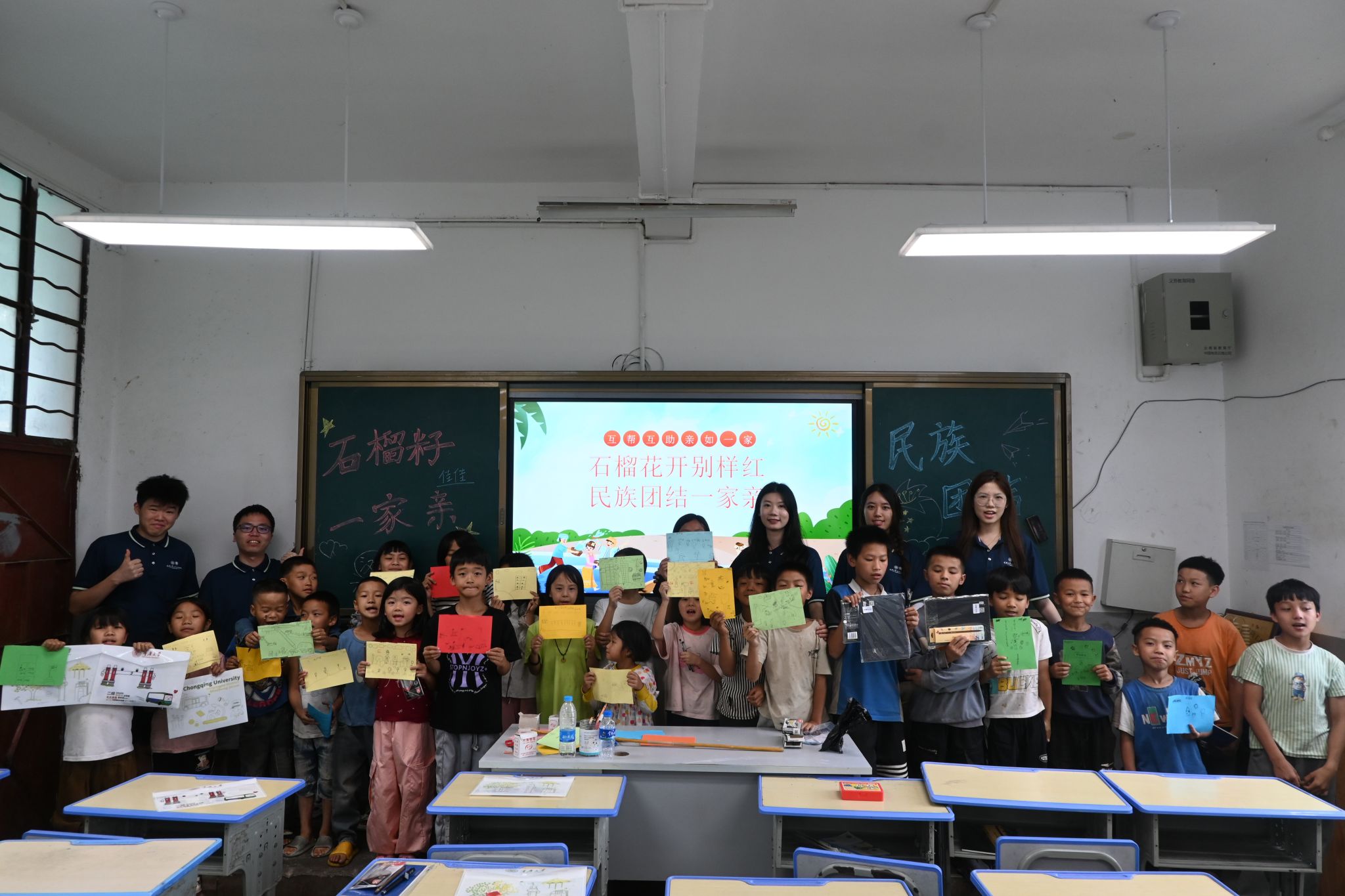 文创奖品,点燃同学们探索的热情。紧接着,服务团成员唐月新的“法治宣传小课堂”将抽象的法理化为身边警示,小故事传递大道理,加深同学们对于法的基本认知。课堂高潮落在畅想未来的互动绘画,稚嫩的笔触下孕育着教书育人的师者、守护正义的缉毒警察……五彩斑斓的梦想瞬间点亮了简朴的教室,也深深叩击着服务团成员的心弦。教育,这项托举未来的基石工程,正奋力为山乡孩子的梦想插上翱翔的翅膀。