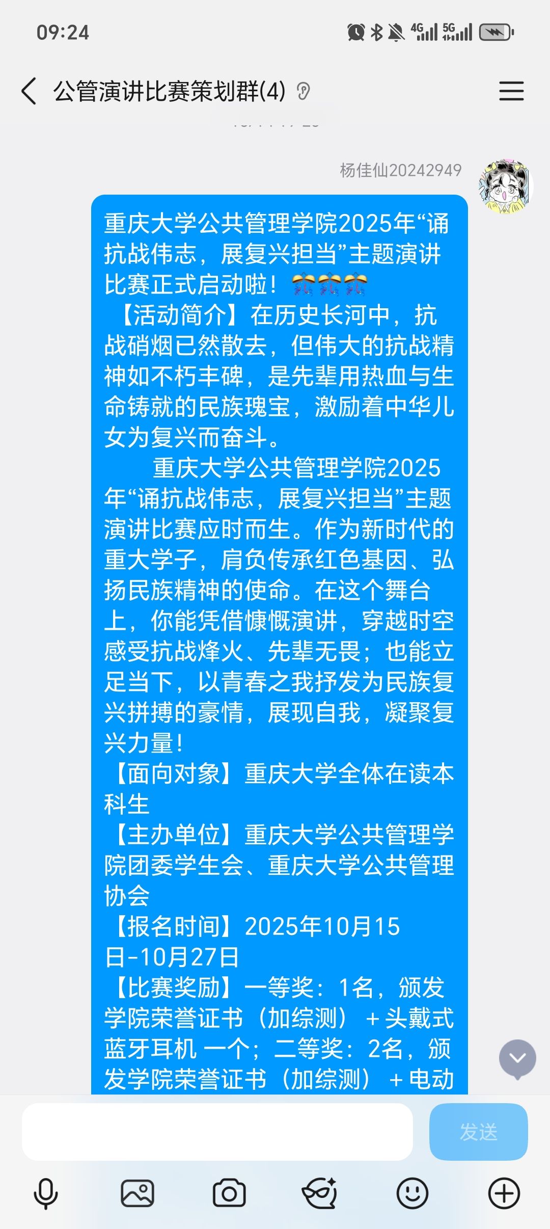 团委学生会与公共管理协会联合主办的“颂抗战伟志,展复兴担当”主题演讲比赛正式启动报名,截至目前已有22名同学成功报名,报名通道将持续开放至10月27日。