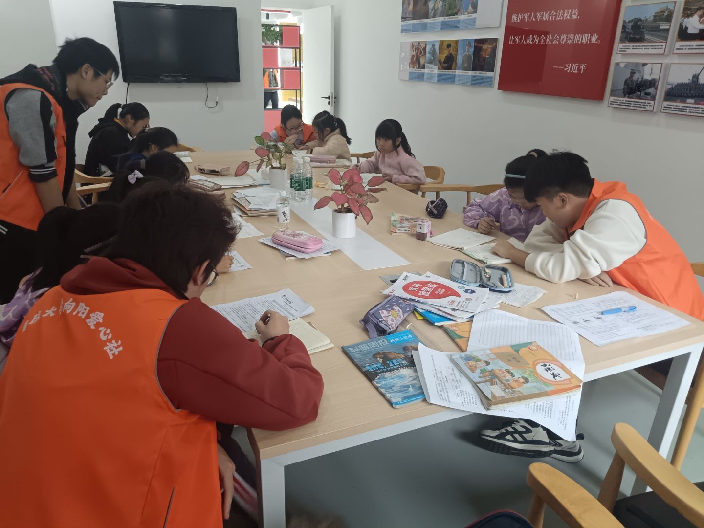 活动现场,身着橙色社服的志愿者们耐心解答小孩子们的每个问题,并仔细观察他们在独立作业时遇到的困难和思路上的误区,力争让孩子们听得懂、学得会。
