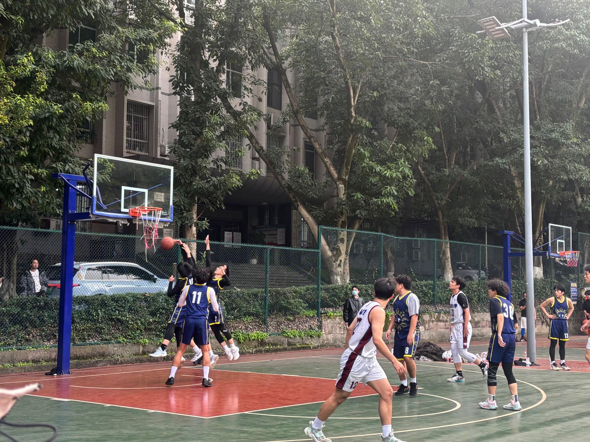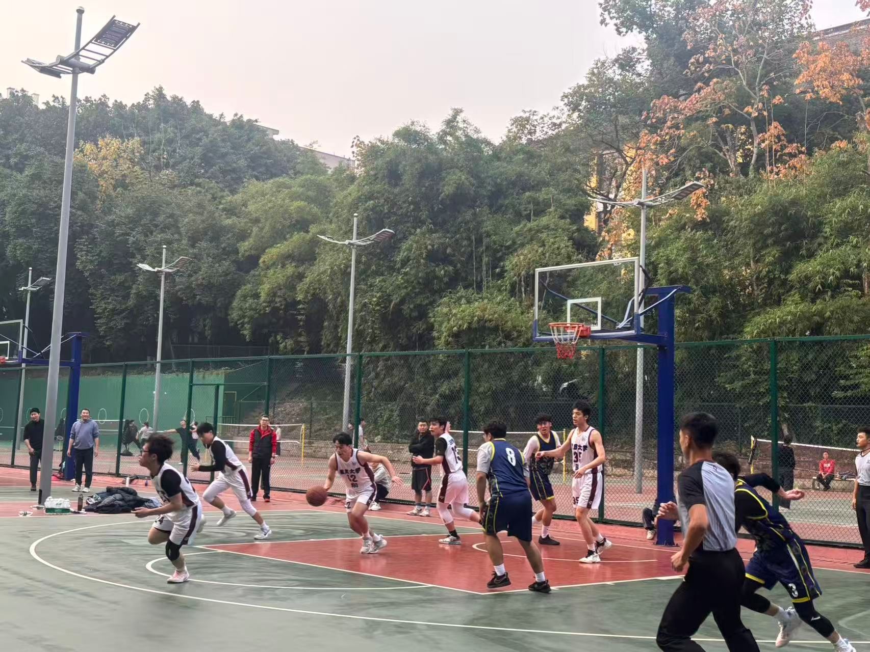 11月30日下午,沙坪坝校区A校园五教篮球场战火燃起,“重大杯”男篮半决赛在此激烈上演。公管男篮迎战生物工程学院队,这场对决关乎冠亚军席位的竞争格局,备受瞩目。此前,公管男篮凭借亮眼表现一路披荆斩棘,高分晋级四强,积累了扎实的比赛经验与默契的团队配合。