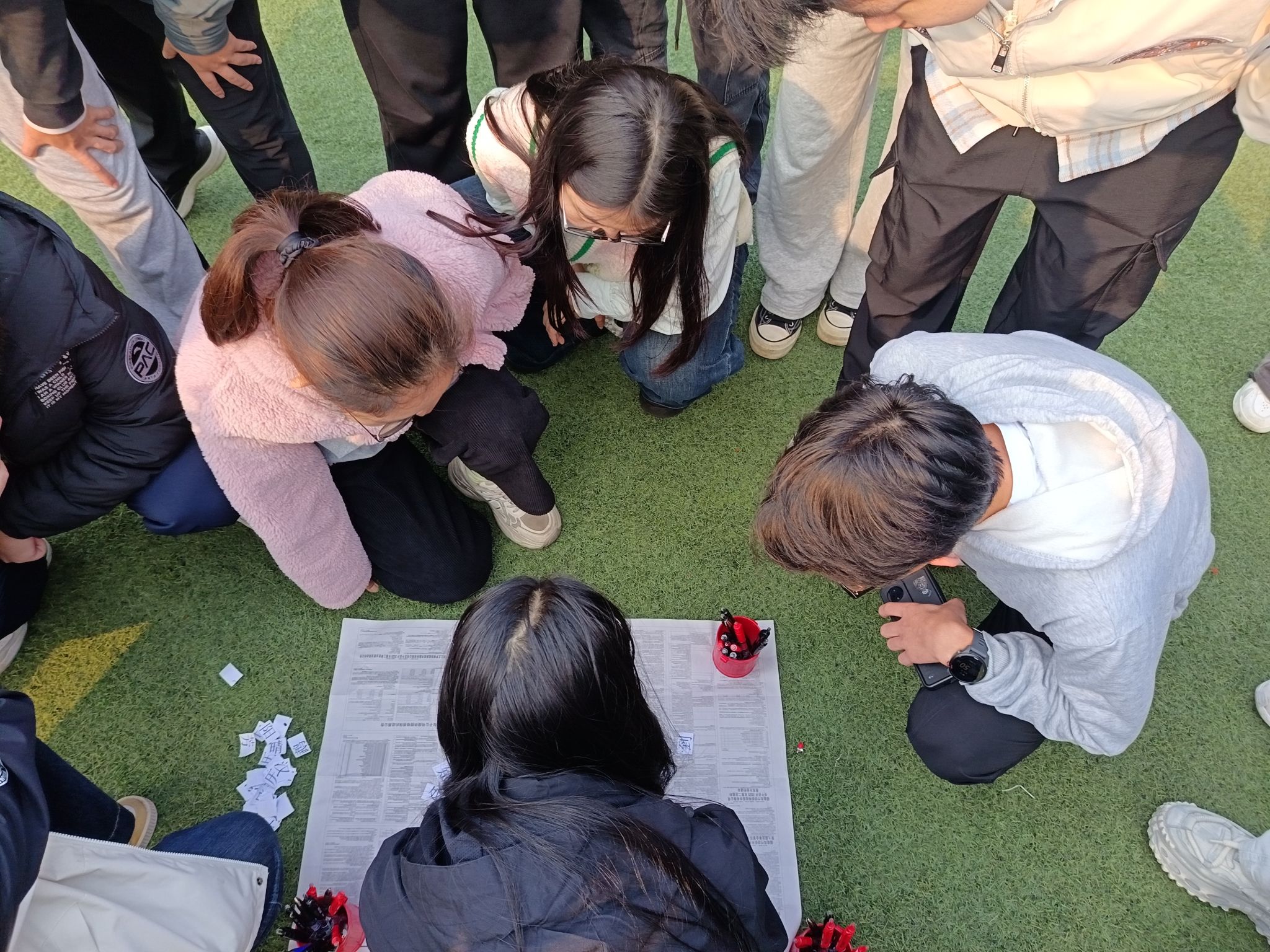 而“站报纸”环节则将气氛推向高潮,队员们通过猜拳对决,在不断对折的报纸上挑战平衡极限,现场欢声笑语不断。整个过程中,同学们全情投入,互相鼓励,展现出蓬勃的朝气与良好的团队精神。