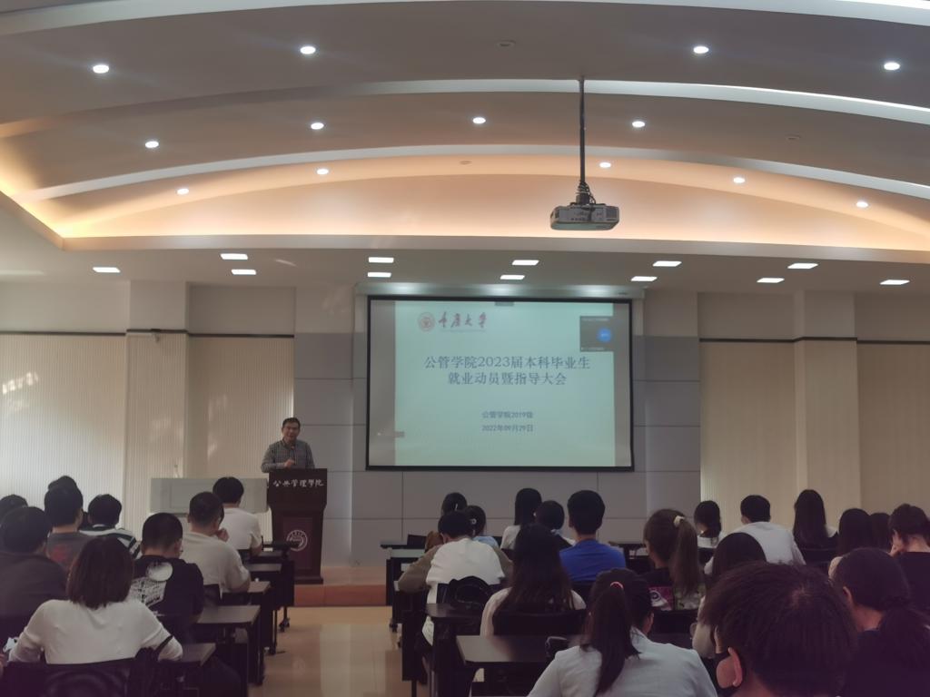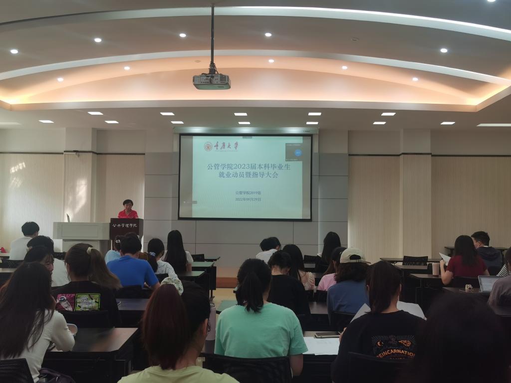 于A区学院楼102教室举办2023届本科毕业生就业动员暨指导大会。由于疫情限制,本次会议采取线上线下同时进行的方式,由学办主任、19级辅导员王丽娟主持,学院党委副书记、纪委书记袁晓浩莅临指导。全体在校的2023级毕业生出席了本次会议。
