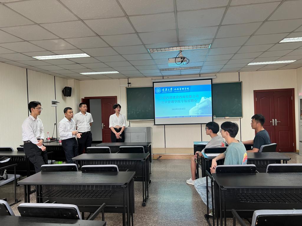 在学院104教室成功举办了中建西部建设西南有限公司专场招聘会,意向应聘西部建设公司的2022届本科毕业生到会参加。中建西部建设公司营销部负责人和人力资源部招聘人员到场宣讲,与同学们亲切交流、答疑解惑,现场气氛热烈。