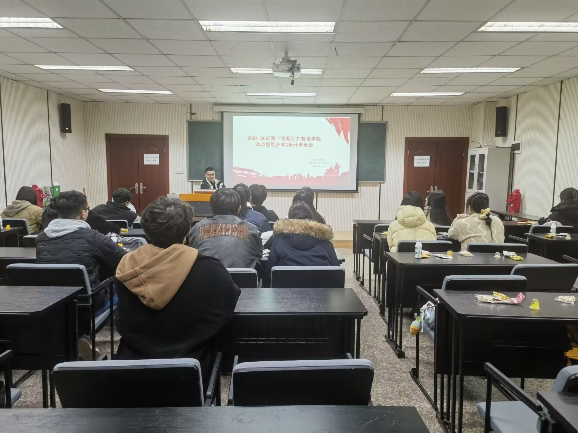 为帮助同学们明确目标、调整心态,为未来的升学或就业做好充分准备,2025年2月18日19:00,2022级2班经济学专业全体同学在69书吧