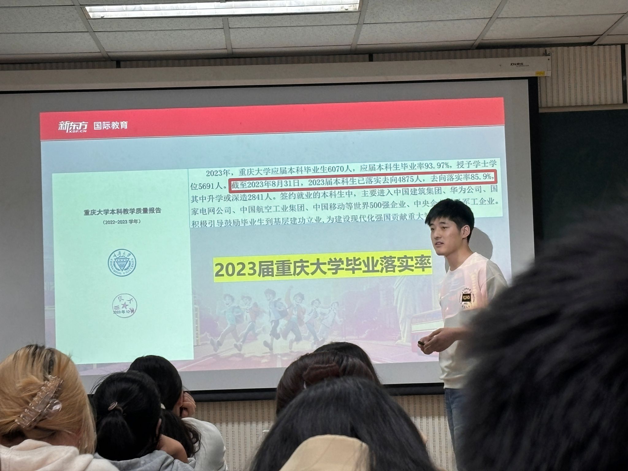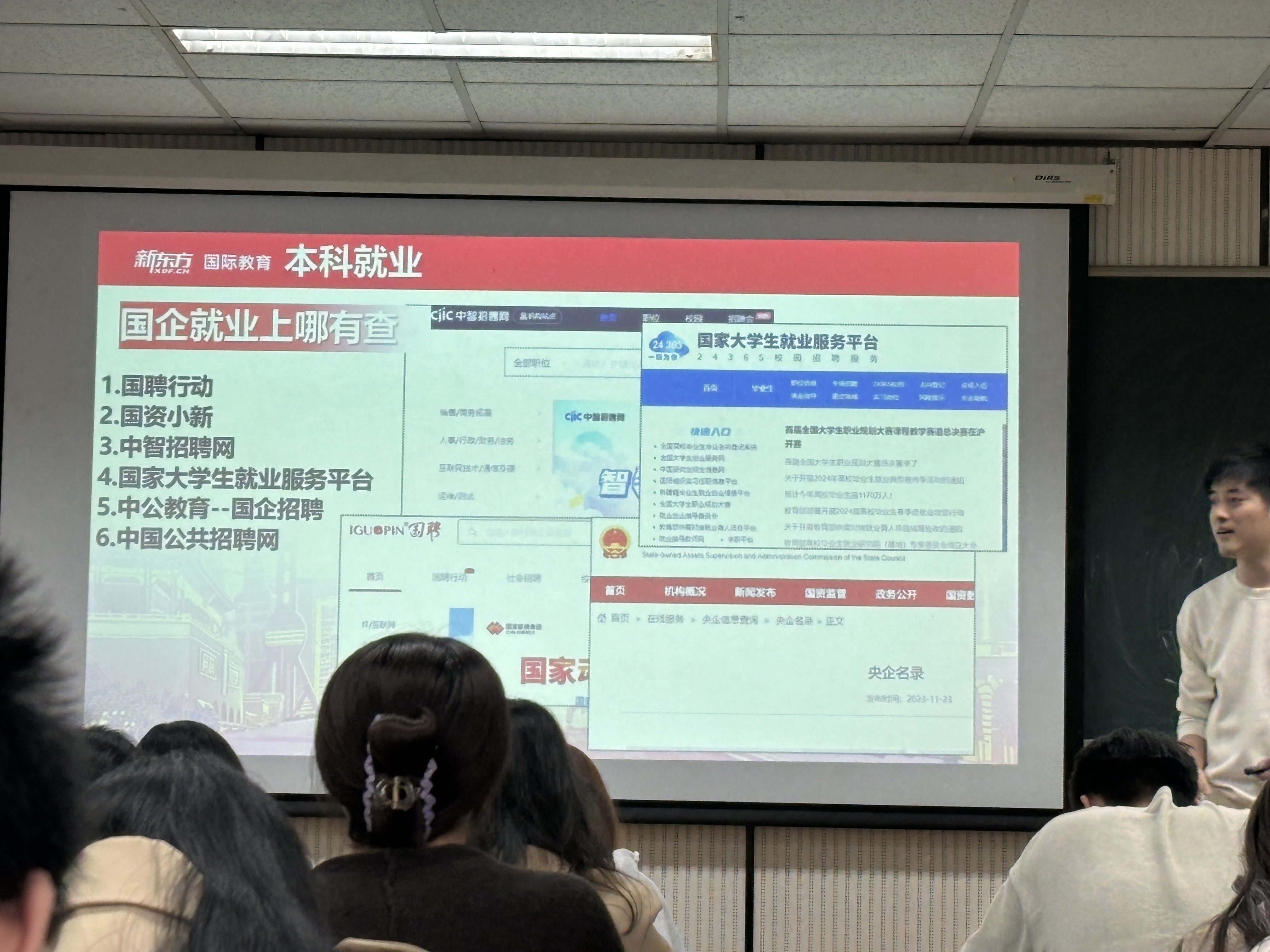老师通过生动的案例和深入浅出的讲解,帮助学生们了解了当前就业市场的形势和需求,引导他们认识自己的兴趣、优势、不足以及努力方向,从而明确个人的职业目标。从多方面去扩宽自己的选择,不局限于考研和工作,还可以留学以及考公。