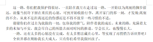 “云中谁寄锦书来”,书墨传信,见字如面。很多话害怕变作脆弱的眼泪,就将它们交给文字吧,穿过岁月穿越人海,信的对面,是我们最爱的人。一位同学这样写道:“这一路,你们把我保护得很好,一直陪在我左右走过这一路,一开始以为别离的脚步很远,就像当初许下留在重庆的心愿,可到开始收拾行李,离开家门的那一刻,才发现:离别的不舍,从来不是距离远近的伤感,而是不得不放弃一些习惯的不适……全世界都在期盼我长大成人,只有你们希望我做回孩子。”