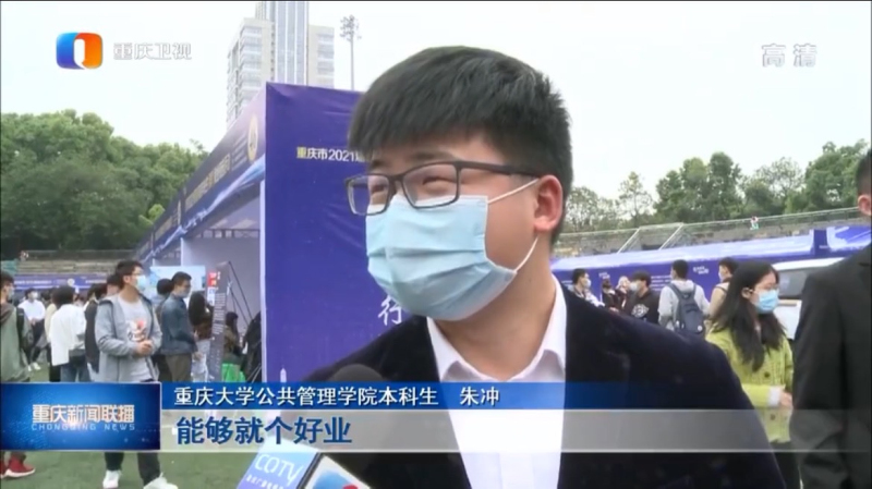 学院2017级本科毕业生朱冲在双选会现场接受了《重庆新闻联播》的记者采访,他谈到:“考不上研究生就找工作,能够就个好业,这次双选会上有国企,也有许多民营企业,有职能岗,有技术岗,比较齐全。”他表示自己要更加努力,找到最适合自己的工作岗位。