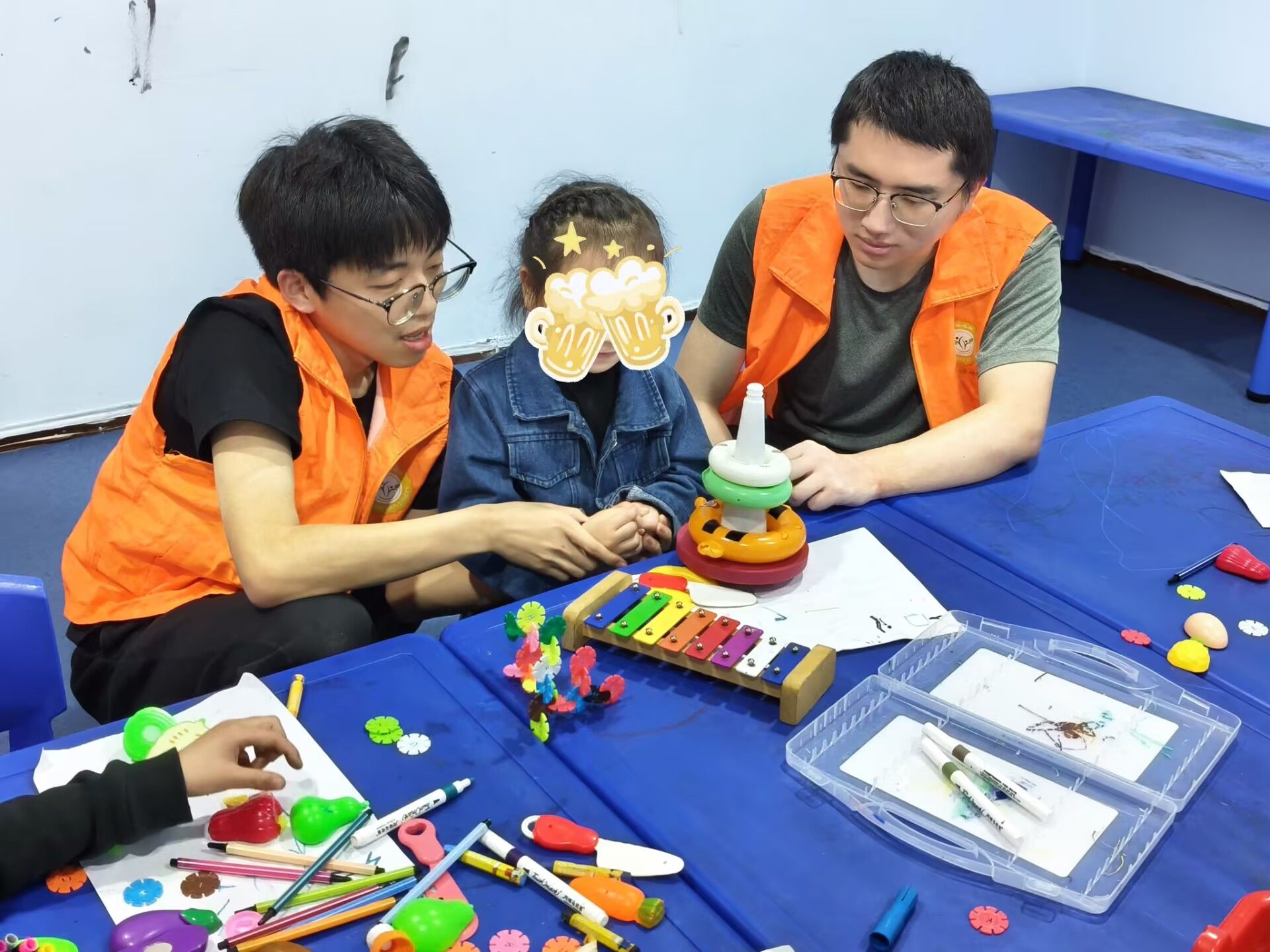本次活动我们策划组只去了两名成员,但志愿者与小朋友们似乎别有默契,所以活动开展地也比较轻松。我们发现许多小朋友都喜欢画画或写一些简单的数字,所以带了许多纸和笔,让小朋友尽兴地创作。这次活动康复中心的老师向我们提供了皮球,志愿者陪着孩子们练习投篮。每次进球,孩子们都欢呼雀跃,十分自豪。最近天气有点炎热,有的志愿者带小朋友累得满头大汗也毫无怨言,诠释真正地志愿精神。