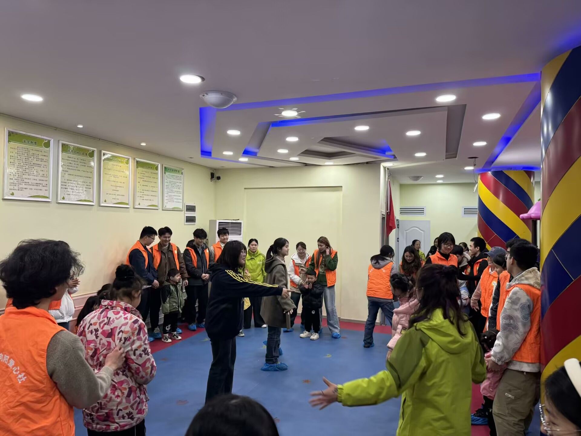 在这新学期的第一次志愿活动中,我们策划组在听取康复中心老师的相关建议后,对活动方案进行了一些创新和改动,给大家带来了别样的体验。这次活动不再像之前那样只是让小朋友各玩各的,而是多种活动形式交相进行。例如一开始的舞蹈和指令训练,让小朋友围成一圈,志愿者站在中间领舞,小朋友们学着模仿,这一下子就让现场氛围活跃了起来。除了集体活动,志愿者也考虑了小朋友自身的情况带领孩子们进行其他活动,如互相按摩,藏东西等。活动结束后,许多志愿者对我们新活动形式也是一致好评,给了我们很大鼓励。