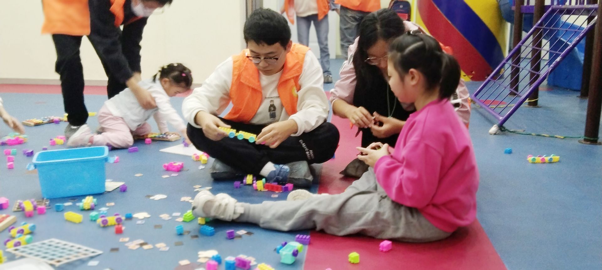 参与活动的志愿者们都本着认真负责的态度,与小朋友们度过了一个美好难忘的下午。在本次活动中也发生了一些有趣的事。刚开始时有个小男孩哭得稀里哗啦,一个志愿者见状后就耐心地把他抱在怀里,温柔地将他哄好了;也有小朋友在胡乱地弹钢琴,但志愿者们也认真地聆听,为小朋友欢呼鼓掌;在小朋友和志愿者共同努力下,拼图终于被拼好,小朋友也收获了满满的成就感;当看到一个小朋友跑得满头大汗时,志愿者立刻上前给她擦汗,没想到小朋友也拿起纸巾像模像样给志愿者擦起了汗水,在这一刻,志愿活动的意义具象化了。
