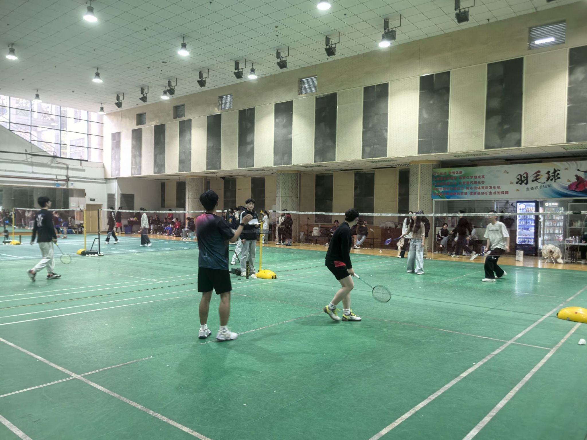 A 区羽毛球馆内气氛热烈、高潮迭起,69书吧