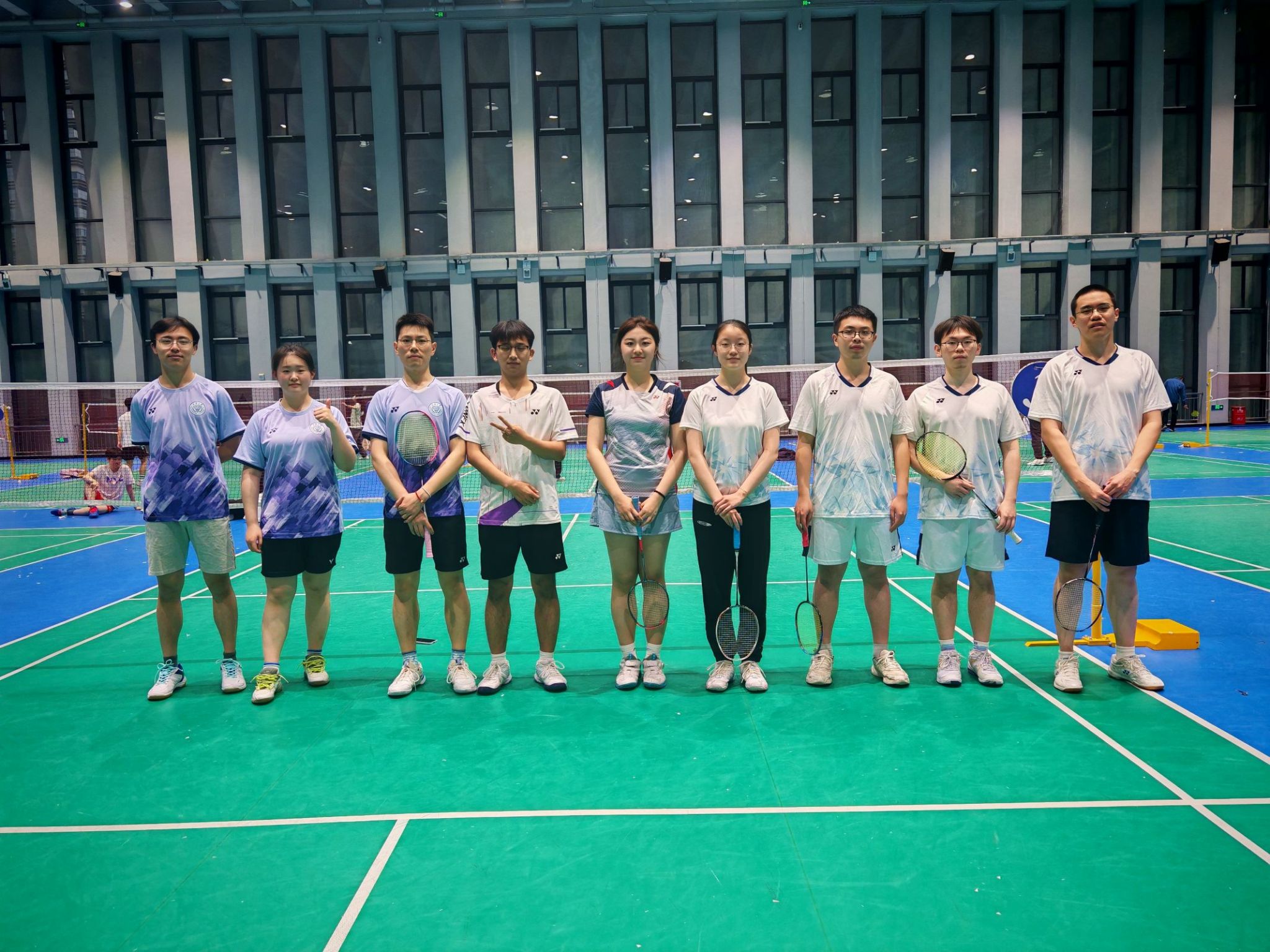 精心选派了9名实力强劲的队员,出战混双、男单、女单、男双、女双五个项目。比赛伊始,面对马克思主义学院的强劲对手,我院选手们迅速进入状态。混双组合配合默契,在网前与后场之间灵活切换,凭借巧妙的战术和精湛的球技,为学院先下一城。