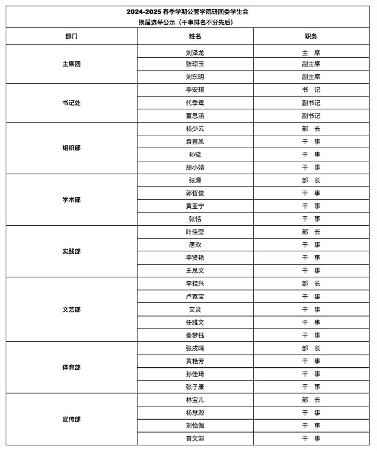至此,本次换届大会圆满落幕。在此对竞选结果做出如下公示。相信新一届研团学团队将以更加昂扬的斗志、更加务实的态度,肩负起服务同学、服务学院的重任,共同谱写69书吧