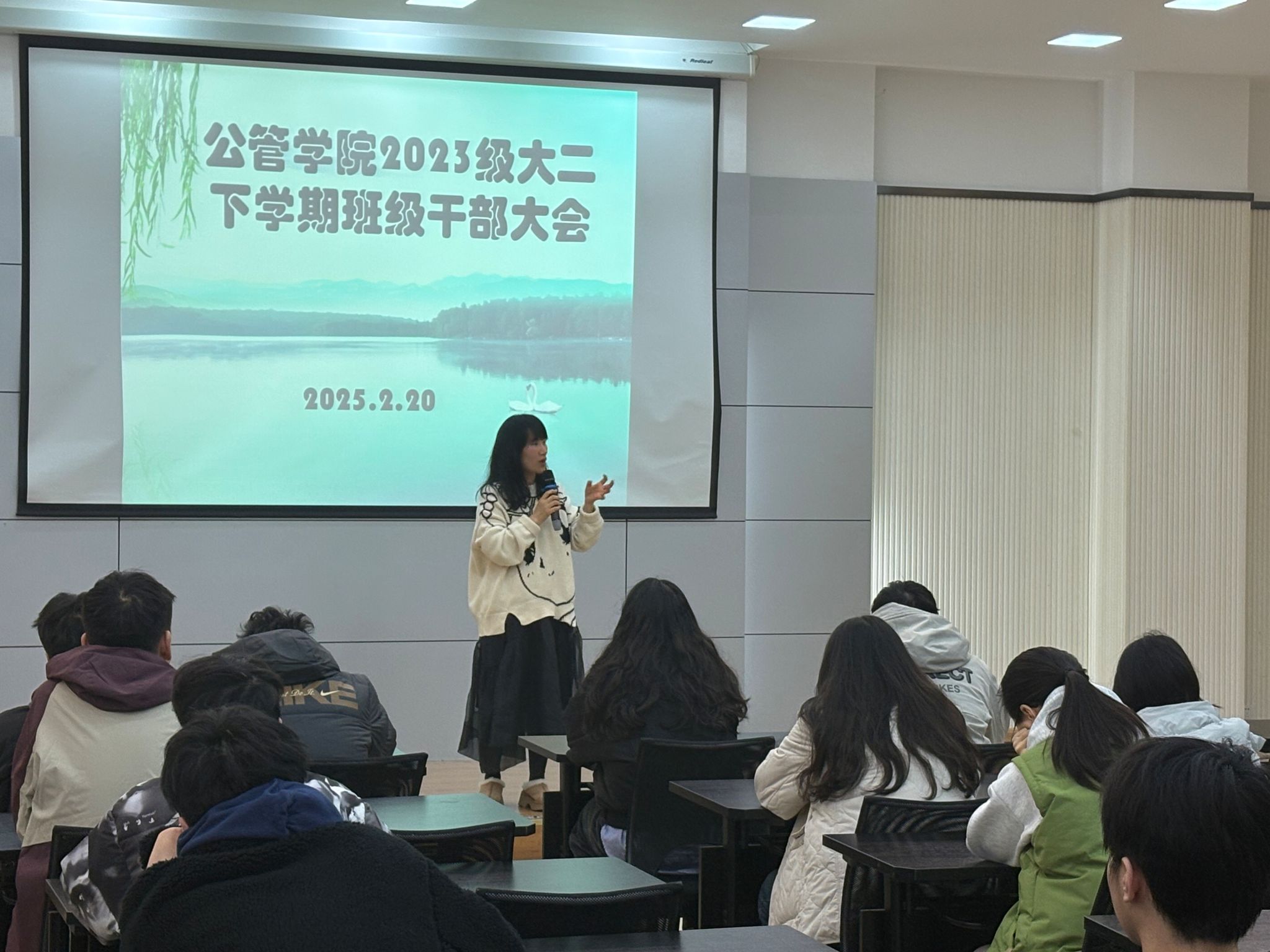 在学院102教室召开了2023级本科生全体班级学生干部大会。会议由23级辅导员徐柳主持,主要围绕班级凝聚力建设,班委自我成长与本学期重要工作安排等方面对新学期进行展望与规划。