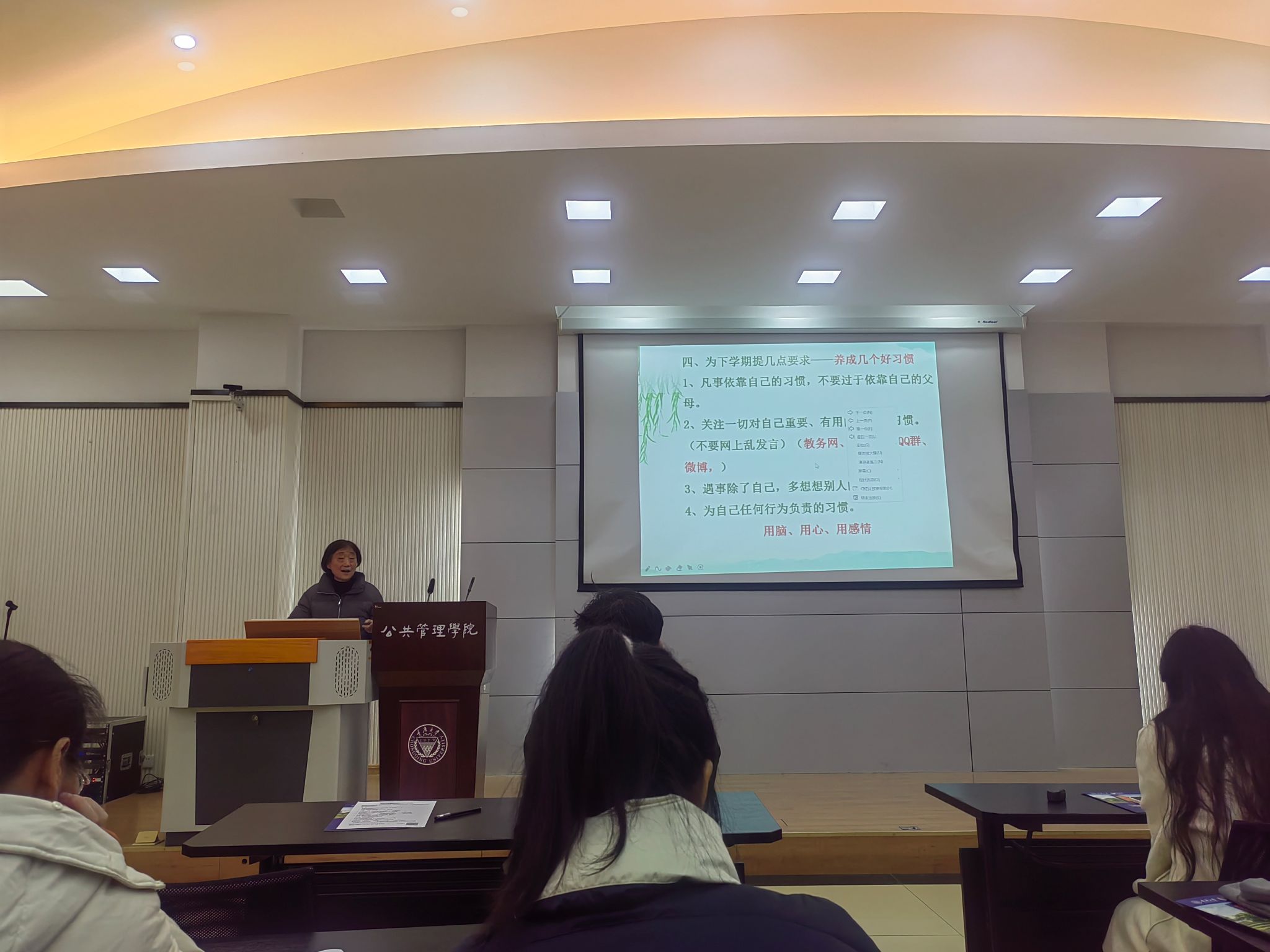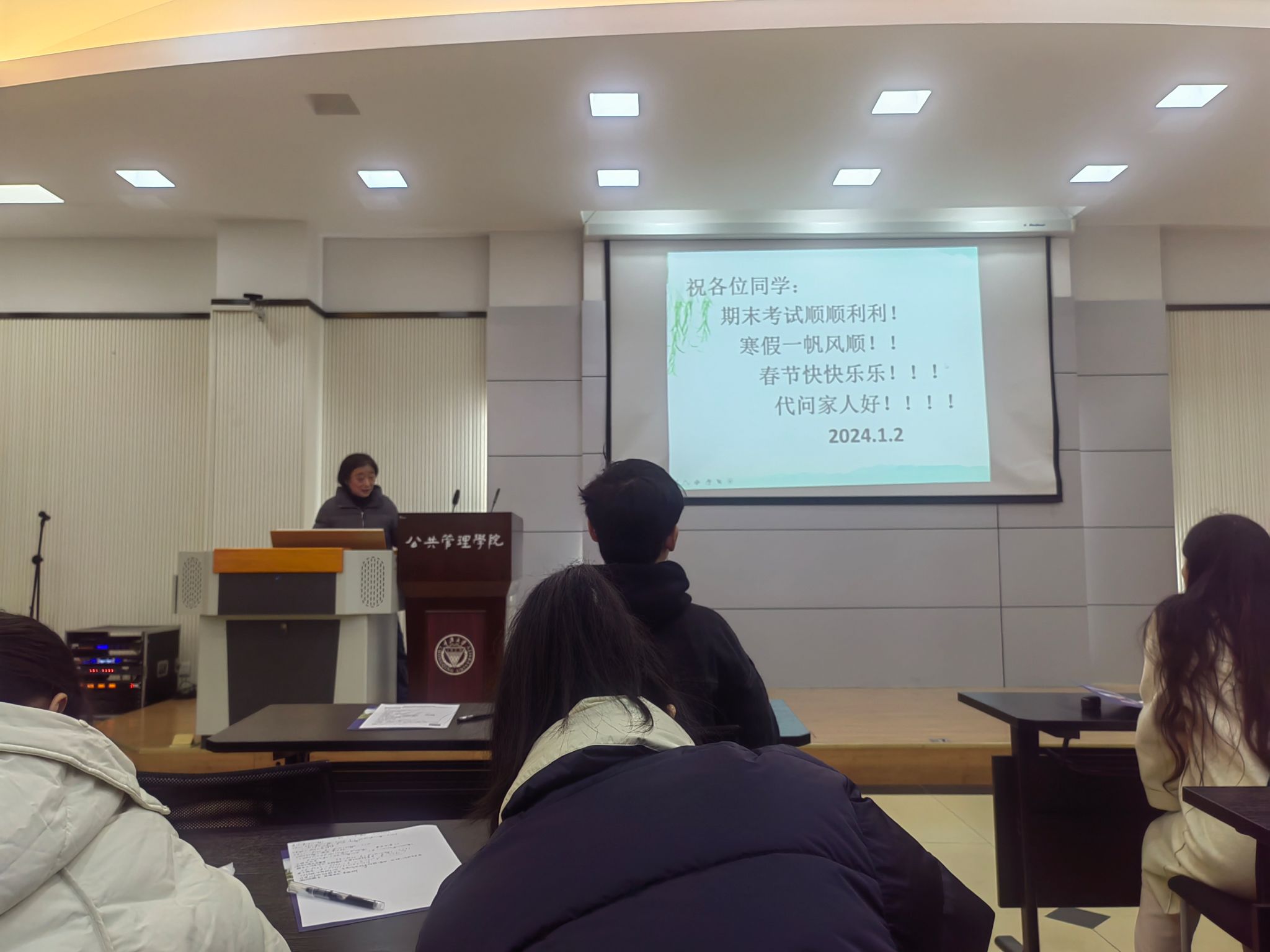 会议的第三部分是安排安全、放假、开学及假期的相关事项。在本环节中,王老师强调留校学生的宿舍用电安全、返乡安全、外出游玩安全应注意的事项,解答了同学们迫切关心的请假、放假等一系列问题,宣布了具体的寒假放假时间以及开学注册时间。提醒按时回校报到注册。