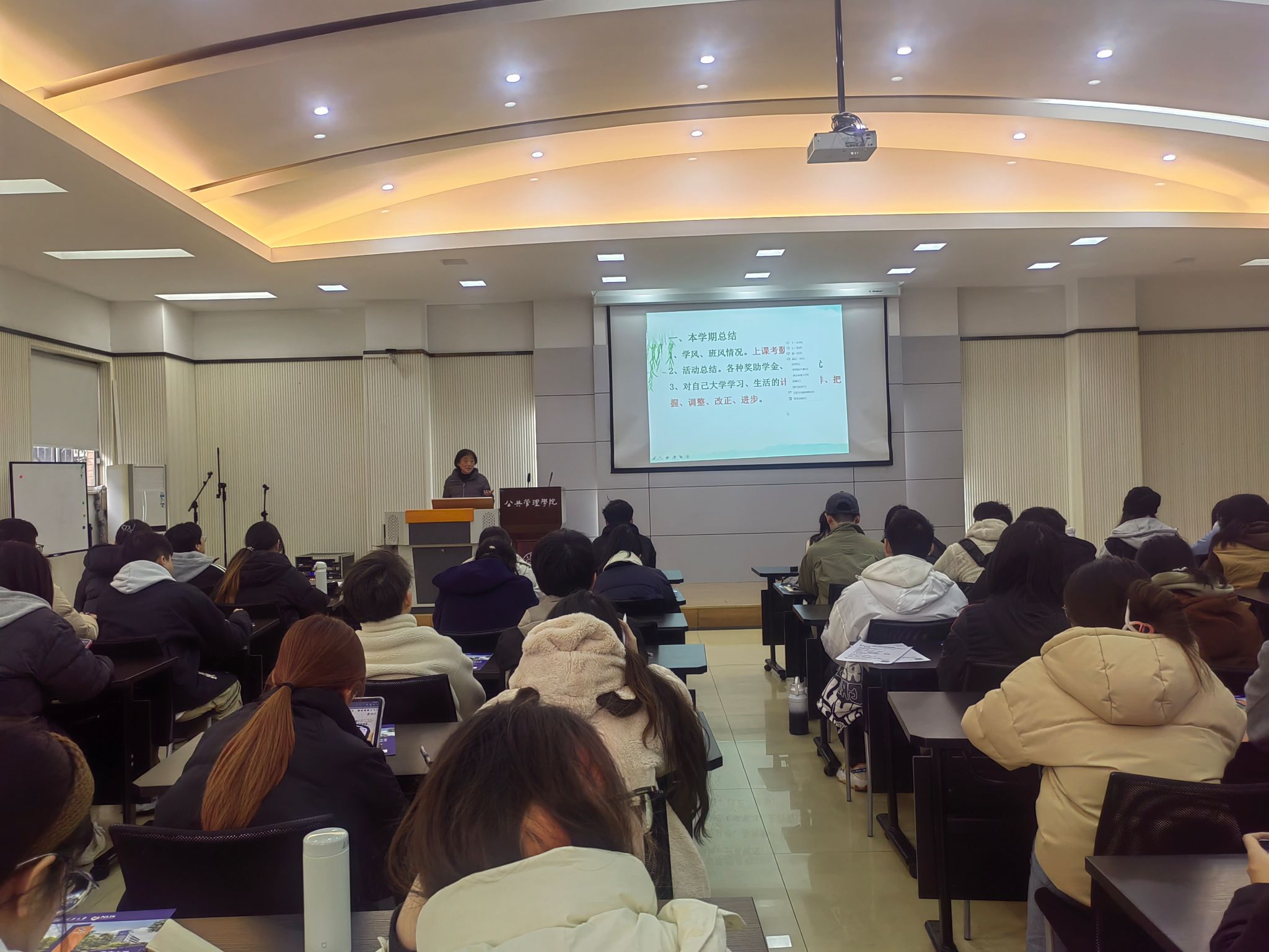 2022级2024-2025第一学期期末年级大会在学院楼102顺利召开。本次大会由学办主任兼22级辅导员王丽娟主持,22级全体同学参与了本次年级大会。