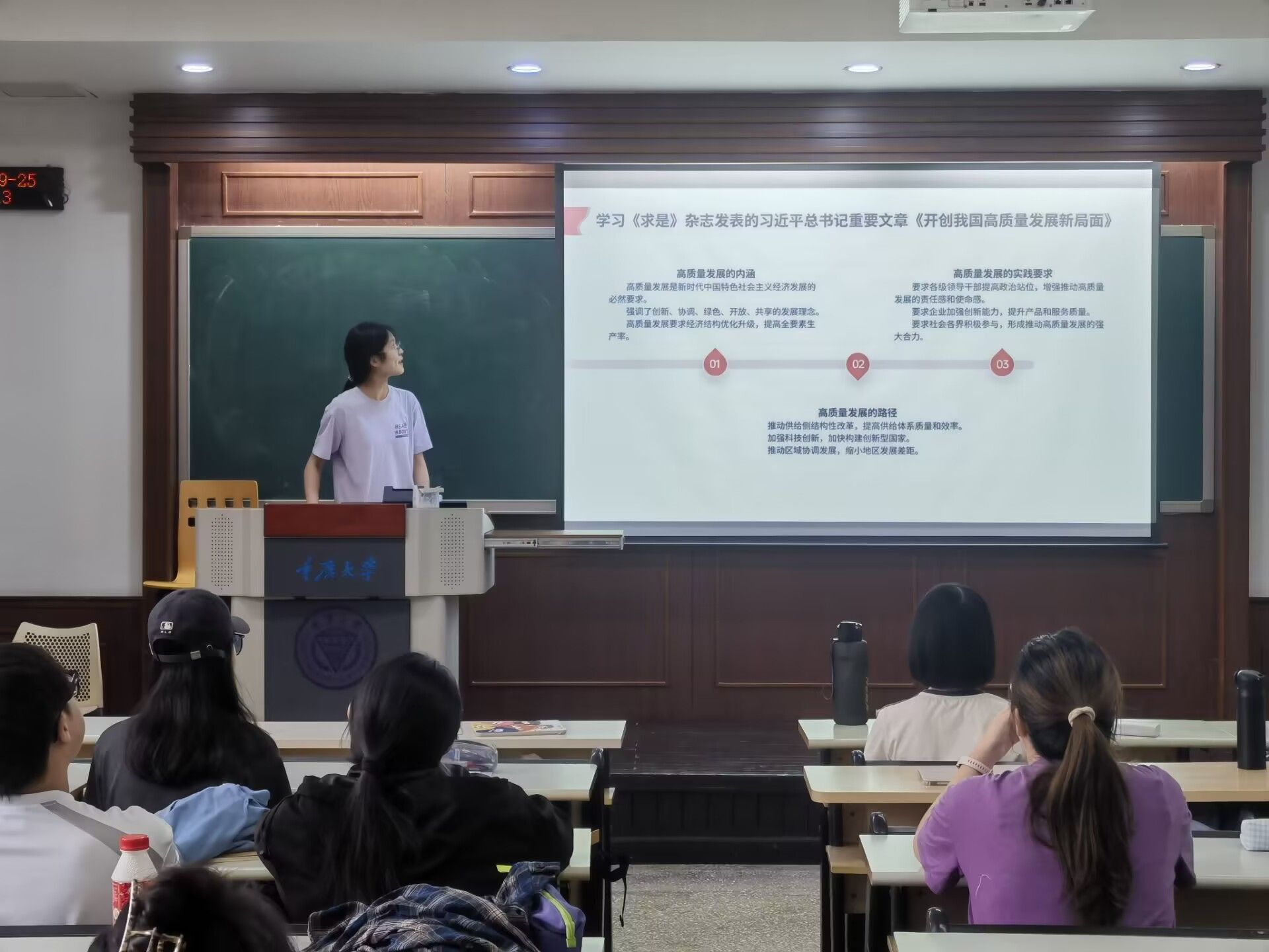 2022级经济学2班团支部在第五教学楼开展“凝聚改革共识,激发奋进力量”主题团日活动。本次活动包含讲解党的二十届三中全会精神以及宣传绿色发展理念两个板块的内容,以及同学讨论发言共三个部分。