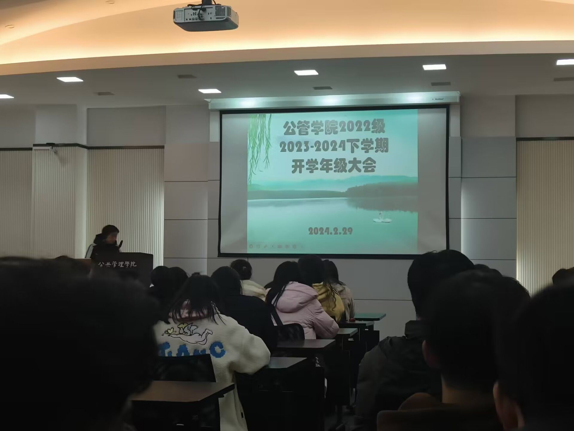 2022级2023-2024下学期开学年级大会在学院楼102顺利召开。本次大会由学办主任、22级辅导员王丽娟主持,22级全体同学参与了本次年级大会。