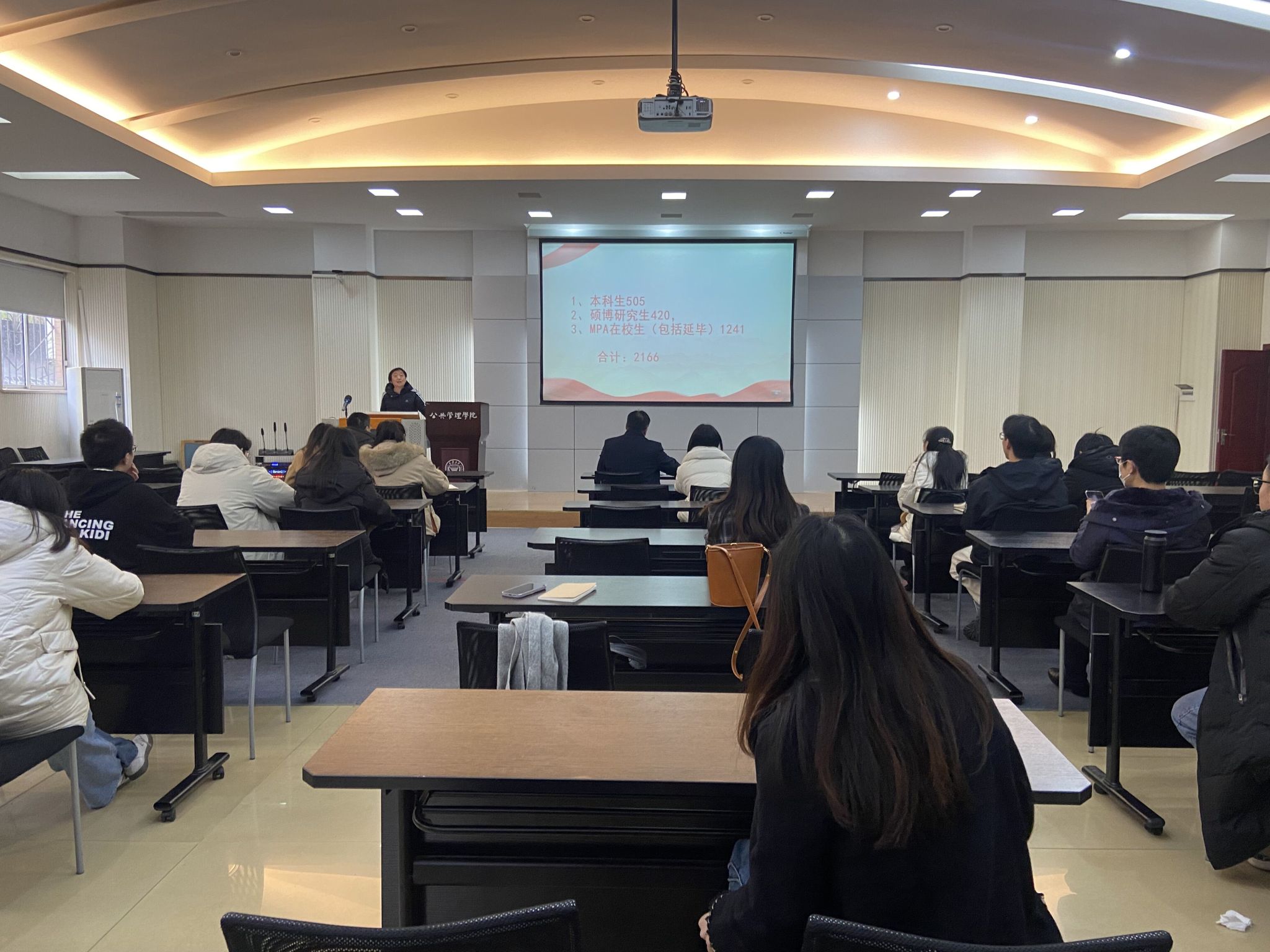 党委副书记、纪委书记周余斌于学院楼102召开全体学生工作干部大会。本次会议由学办主任本科22级辅导员王丽娟主持,学院全体辅导员、兼职辅导员、班主任、学业助理到场参加会议。