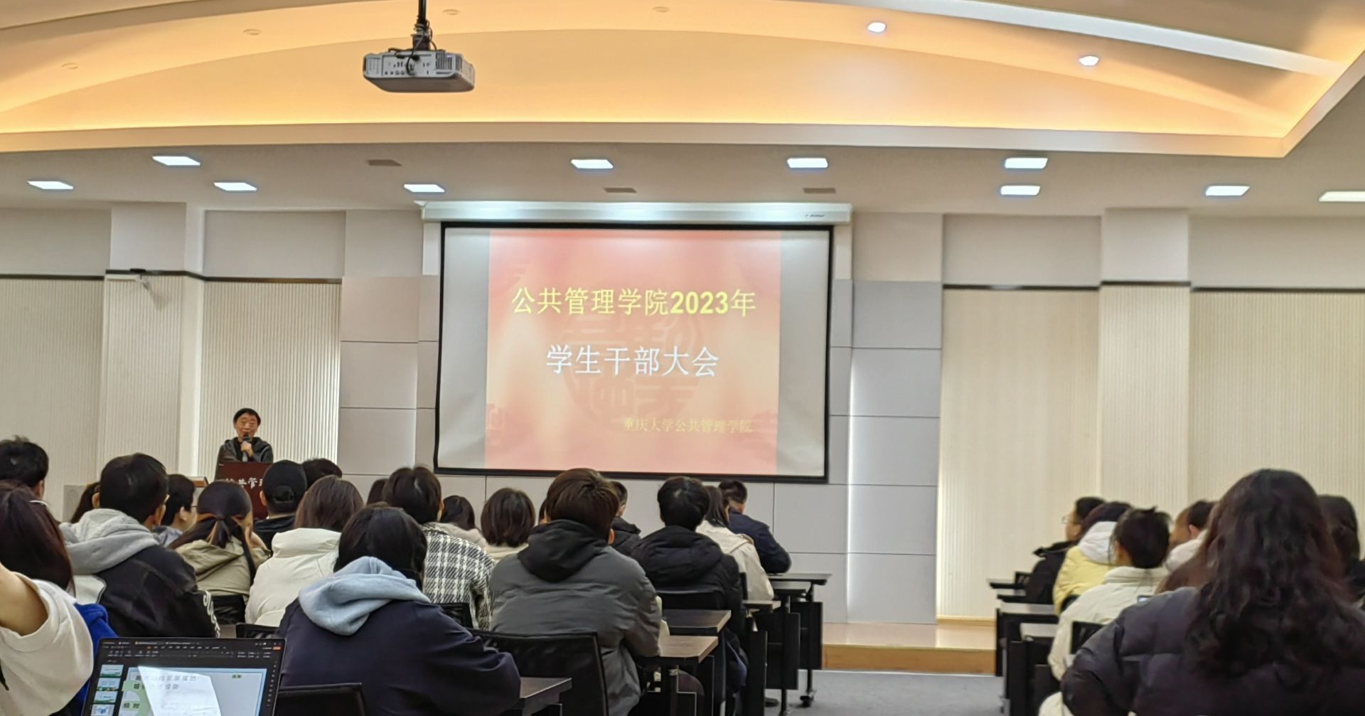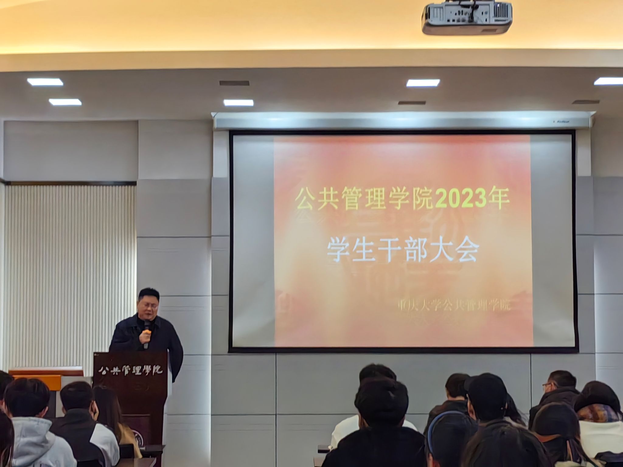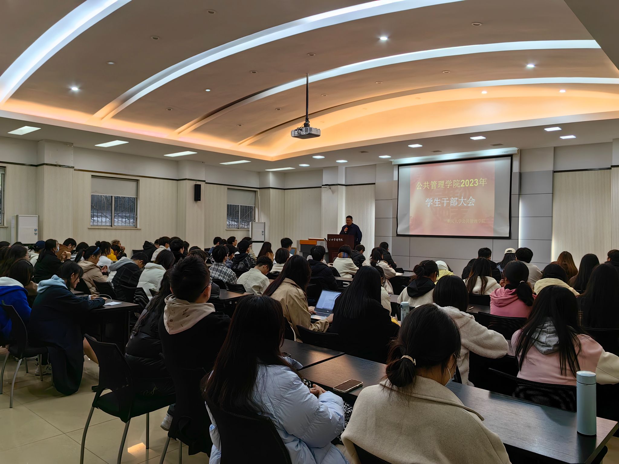 2023年学生干部大会。研办主任研究生辅导员肖干、学办主任本科22级辅导员王丽娟、团委书记本科21级辅导员徐柳、2020级辅导员包晗、研究生辅导员李珊珊与全院研究生、本科生各班班长、团支部书记以及院团委学生会、研团委学生会成员参与了本次大会。本次大会由学办主任王丽娟主持。