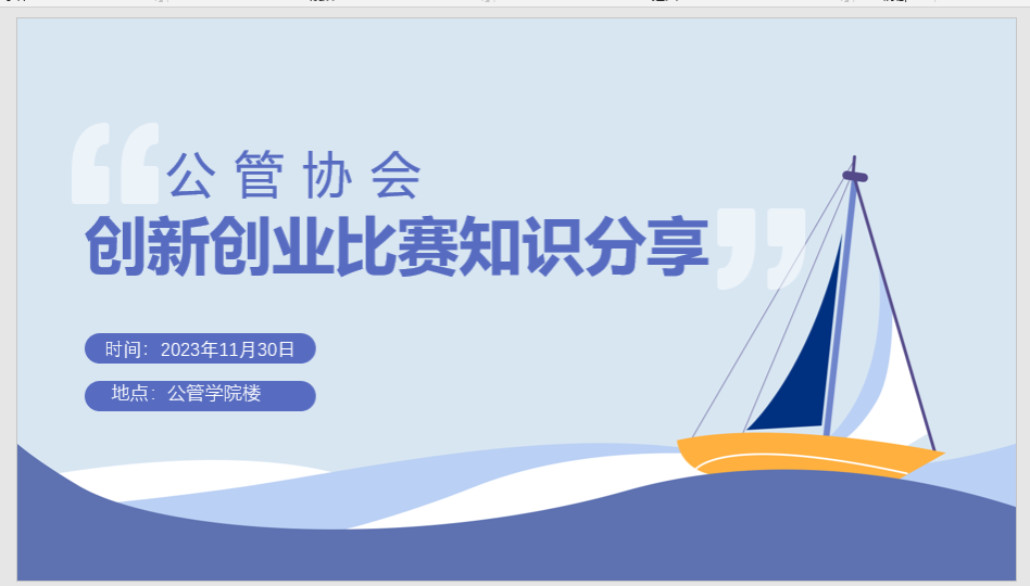 随着大二年级的到来,同学们参与各项创新创业比赛的热情日益高涨,为增进同学们对创新创业比赛的了解,学院公管协会与2023年11月30日在69书吧