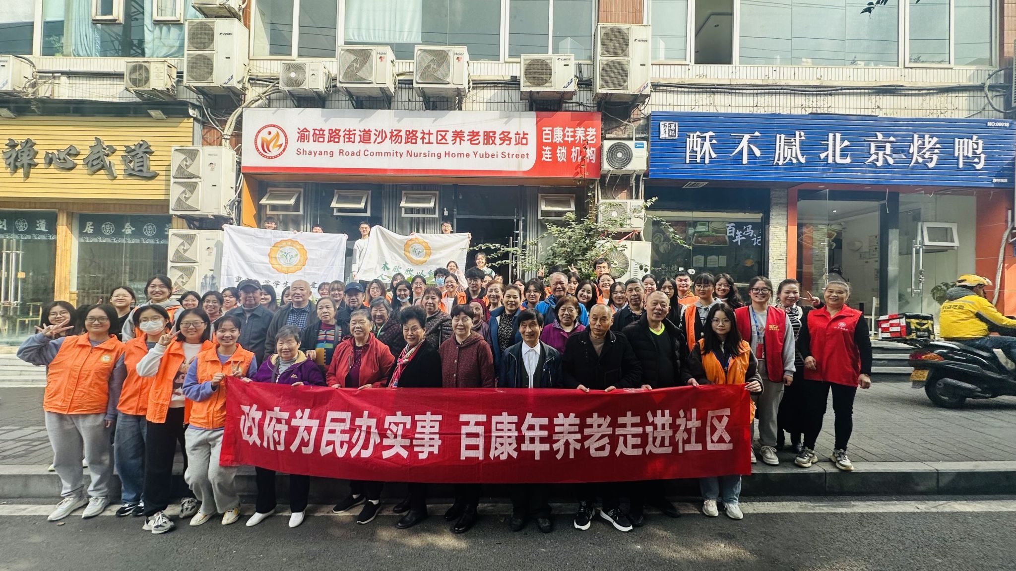 学生向阳爱心社组织承办的志愿活动“热乎饺子迎冬日,敬老慰问暖人心”在重庆市沙坪坝区百康年养老连锁机构渝碚路街道沙杨路社区养老服务站顺利开展。