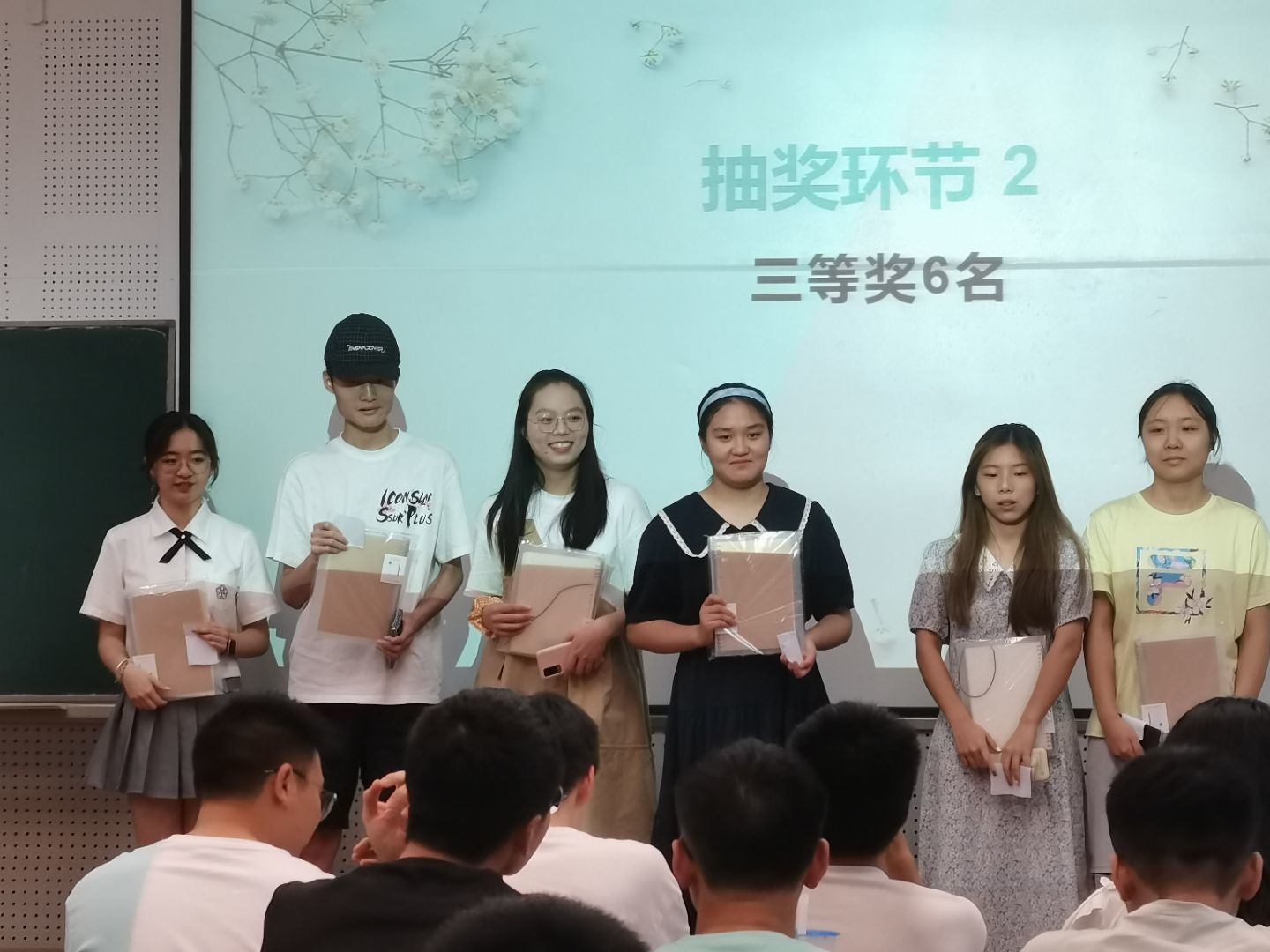 接着便是社员们精彩纷呈的节目表演。文化部、志工部等五个部门成员各出奇招,逗得台下的同学们捧腹大笑。其中,由荣召康同学演唱的《光照的方向》更是将整场庆典引入高潮。表演之后,是社员们积极参与的游戏环节。第一个游戏是你比我猜,其中游戏成员对“含笑半步颠”一词的比划可谓是表演到了精髓。第二个则是听歌识剧名,无数童年动画的主题曲在耳边响起,童年的回忆又涌入了脑海,社员们争抢回答赢得一张张纪念意义的明信片奖励。第三个是谁是“凶手”游戏,该游戏略具难度,但是难不倒聪明的向阳社员们,最终“凶手”被成功指认。
