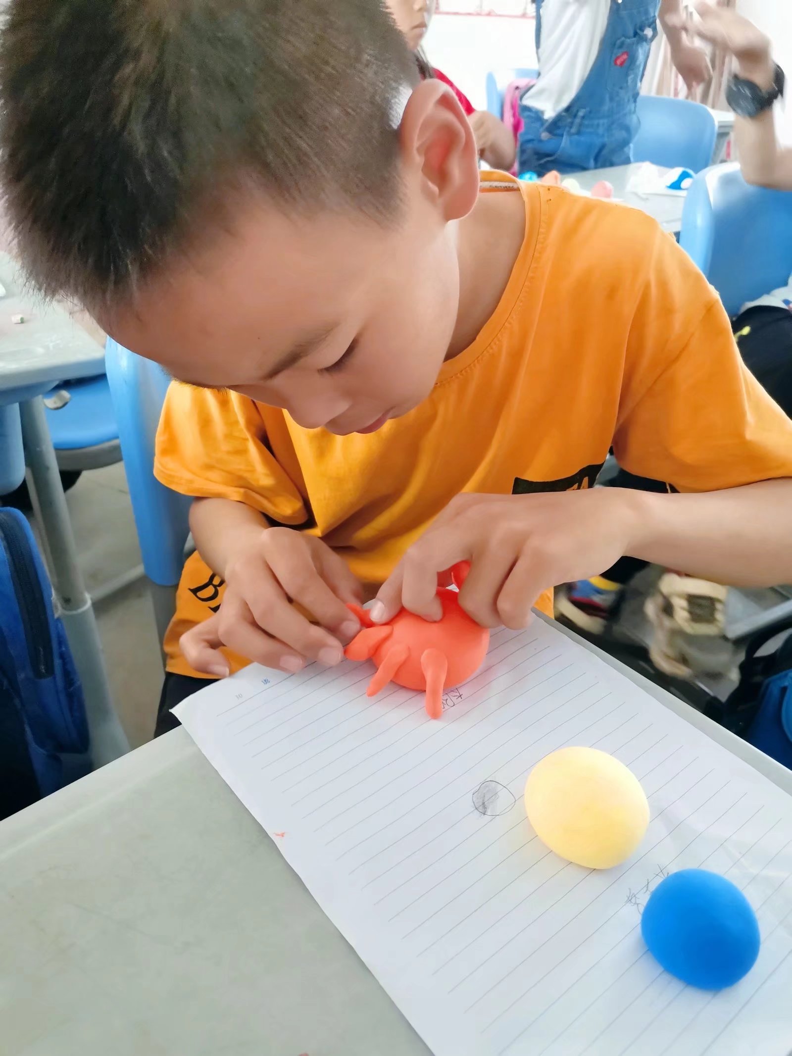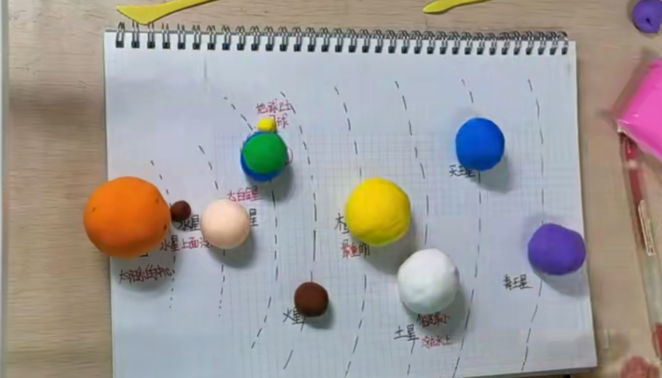 在手工制作环节,孩子们充分发挥动手能力和想象力,创造出了属于他们的星空。他们跟随老师的讲解将一个个的小行星放入指定位置,尽情地发挥着自己的想象力,把星星们捏成自己喜欢的形状。在这堂天文知识探索课中,小朋友们不仅收获了欣喜和快乐,也对充满神秘色彩的浩瀚天际有了更多的了解。