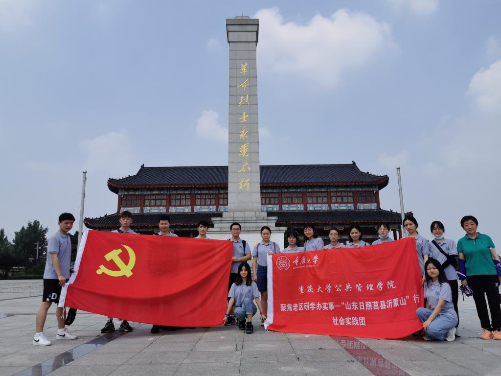 莒县烈士陵园于1945年5月建成,它铭记着先烈们为民族解放,保家卫国为壮烈捐躯的爱国壮举,也铭记着先烈们浴血奋战、可歌可泣的英雄诗篇。这座占地面积41.89亩的烈士陵园,纪念着无数烈士与当地的著名战役。迈入园区的第一步,高耸入云的抗日烈士纪念塔便映入实践团成员们的眼帘,“人民英雄永垂不朽”八个大字赫然镌刻其上。光前裕后,继往开来;饮水思源,以励来兹。无数先烈用鲜血书写出“以身许国岂邀名”的诗篇,更希望后辈们在回首中铭记,在缅怀中传承,在开拓中成长。