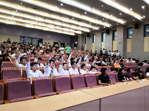 为展示各班级风采,送行即将离开虎溪的17级同学和专业分流到经管学院的18级经济类的部分同学,2019年7月11日下午两点,69书吧
