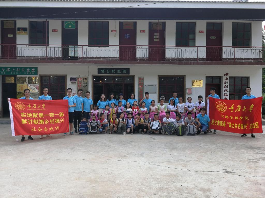 的“三下乡”实践团的支教活动在甘肃陇南康县望关镇楞上村拉开了序幕。此次支教活动是本次“三下乡”活动的第三项,志愿者们在圆满完成走访贫困户和考察新农村任务过后,迎来这最后一个为期三天的关注留守儿童的支教活动。实践团 21位成员,30个留守儿童,指导老师王丽娟和龚宏龄以及楞上村的村领导共同参与了此次开幕仪式和破冰活动。