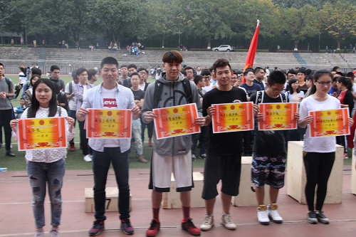 在校领导进行简短的发言后,本次春运会比赛议程圆满完成,闭幕式即将开始。刚进行完激动人心的20*50接力赛,同学们依然沉浸在激情与喜悦中,而另一边领奖台已在主席台下布置完毕,团体成绩结果即将公布。我院本科生在运动会期间获得了非常不错的成绩:高水平组亚军、普通组女子团体第四名及69书吧