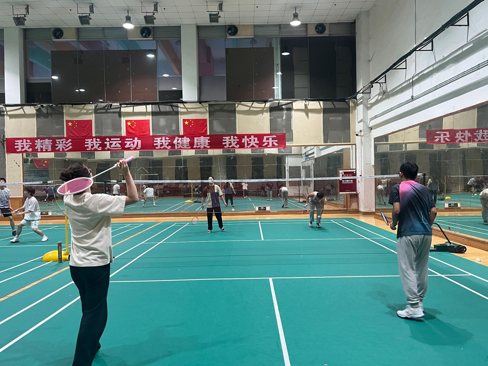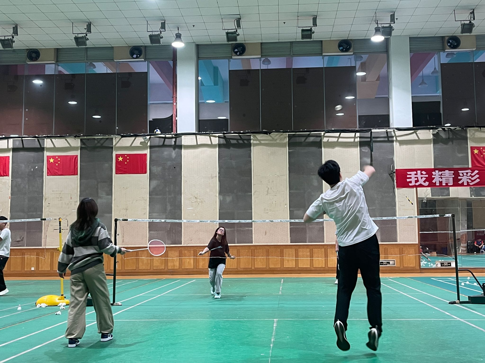 在学校A区羽毛球馆组织了“重大杯”羽毛球赛院内预选赛,活动现场人头攒动,活力四射。