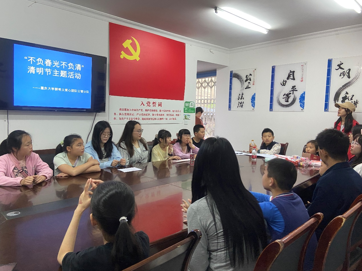 郭明义爱心团队公共管理学院分队积极响应“传承弘扬中华优秀传统文化”号召,在清明节到来之际,组织开展“不负春光不负清”清明节主题志愿服务活动。团队深入沙坪坝区沙正街社区党群服务中心,以学习传统、体验传统为主线,面向社区儿童开展传统节日介绍、经典诗词诵读和传统风筝手绘三项趣味活动。本次志愿活动旨在深入推进中国节日传统振兴,弘扬传统文化,丰富社区小朋友的精神文化生活,增进社区活力,让小孩子在诗词中学,在故事中思,在绘画中悟,积极领悟传统文化。