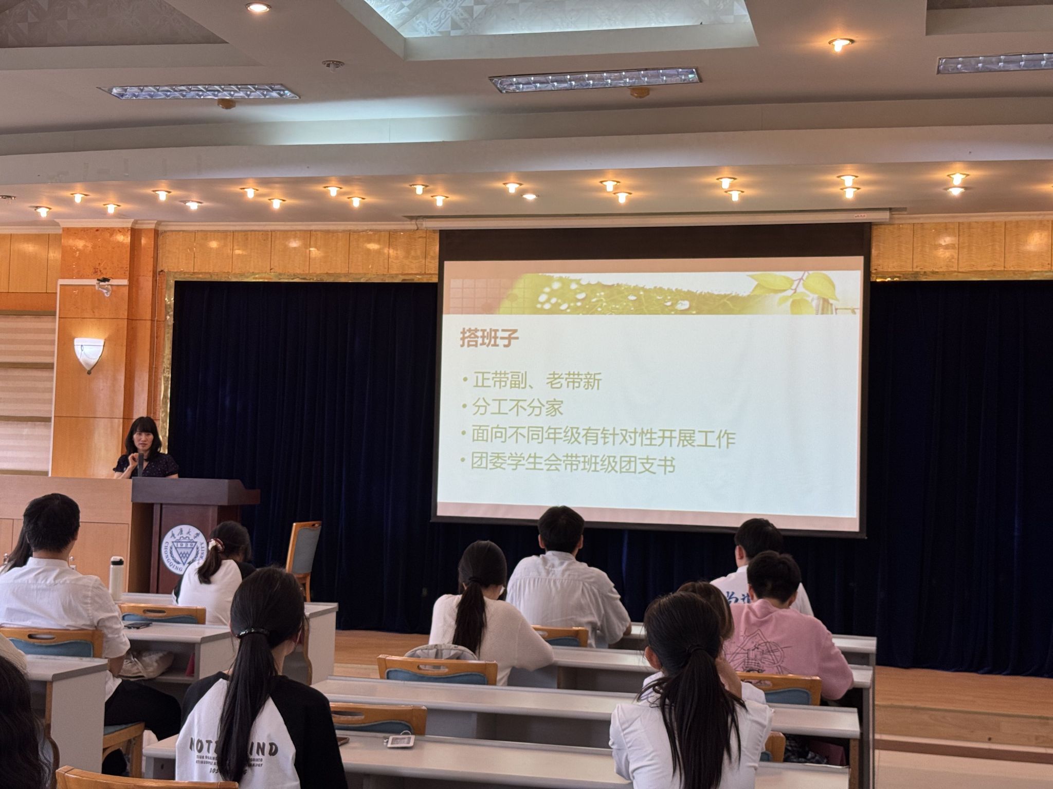 大会最后,徐柳老师以“珍惜、共创、成长”勉励在场同学。本次会议对学生干部提出了明确要求,并对本学期工作进行了细致安排。相信全体学生干部将以高度的责任感投入未来工作,为学院发展贡献青春力量。