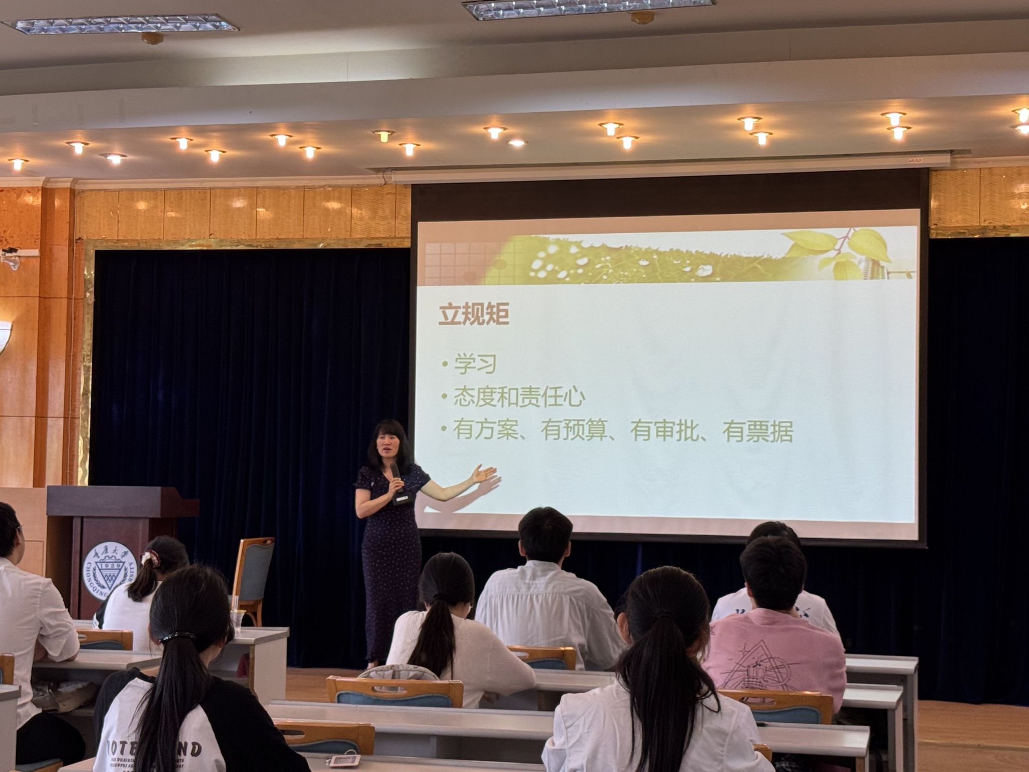 随后,徐柳老师向全体学生干部“立规矩”,要求大家发挥模范带头作用,不断增强自身能力,保持学习积极性和主动性;明确学生工作应有的态度与责任心,以昂扬姿态履行职责。徐老师还特别强调了工作流程的规范性,指出方案需充实、预算需合理、审批需严格、票据需规范。与会全体学生干部认真聆听,将各项要求铭记于心,表示将在未来工作中不断磨砺能力,规范合理地开展各项活动。
