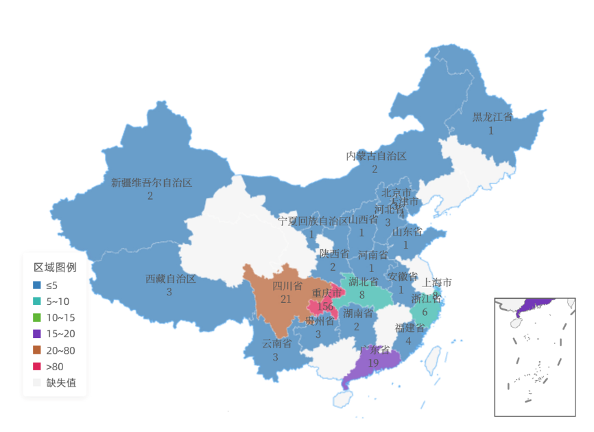2018届硕士毕业生共162人选择就业,占硕士毕业生总数的95%。主要分布在18个省级行政区,其中69%的毕业生(111人)选择留在重庆市就业,主城区人数居多,主要分布在沙坪坝区、渝中区、渝北区和九龙坡区,周围区县有江津区、万州区和永川区人数较多。其余就业人数较多的省级行政区有四川省(13人)、广东省(10人)、湖北省(5人),另各有1人去往新疆和西藏。
