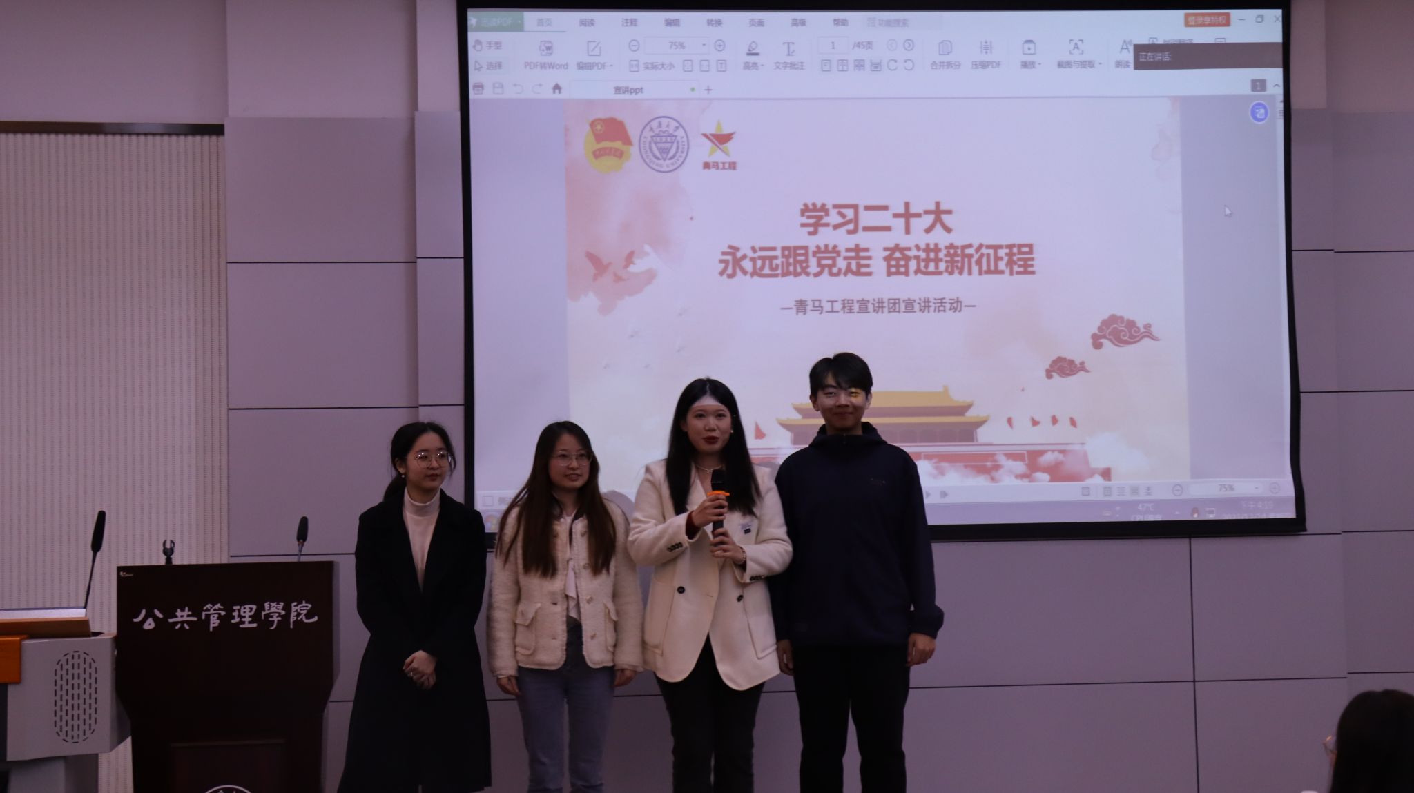 2023-12-22为进一步学习宣传贯彻党的二十大精神,推动69书吧 学生努力成长为有理想、敢担当、能吃苦、肯奋斗的新时代好青年,2023年12月14日,我院青马班宣讲团在学院楼102教室开展“学习党的二十大、永远跟党走、奋进新时代”主题宣讲活动。会议伊始,本科2020级重庆市级青马班宣讲员郭佳良同学带领同学们回顾了党的二十大精神,着重阐述“五个牢牢把握”的具体内容。通过学习,同学们结合“五个牢牢把握”要求,深度思考对“做什...