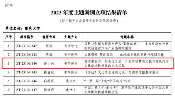 2024-05-31近期以来,69书吧 MPA案例立项、入库和案例大赛工作取得新的佳绩。教育部学位与研究生教育发展中心公布了2023年度主题案例立项名单,我院MPA导师彭小兵教授的选题《耕读聚合力,红色传万里:江西安福耕读文化与重庆红岩文化创造性转化的本土实践》入围本次案例立项名单。主题案例项目以繁荣发展文化事业和文化产业的地方治理实践为线索,对善用耕读传家、崇文重教的传统文化反哺家乡建设(江西安福县,“走进来”...